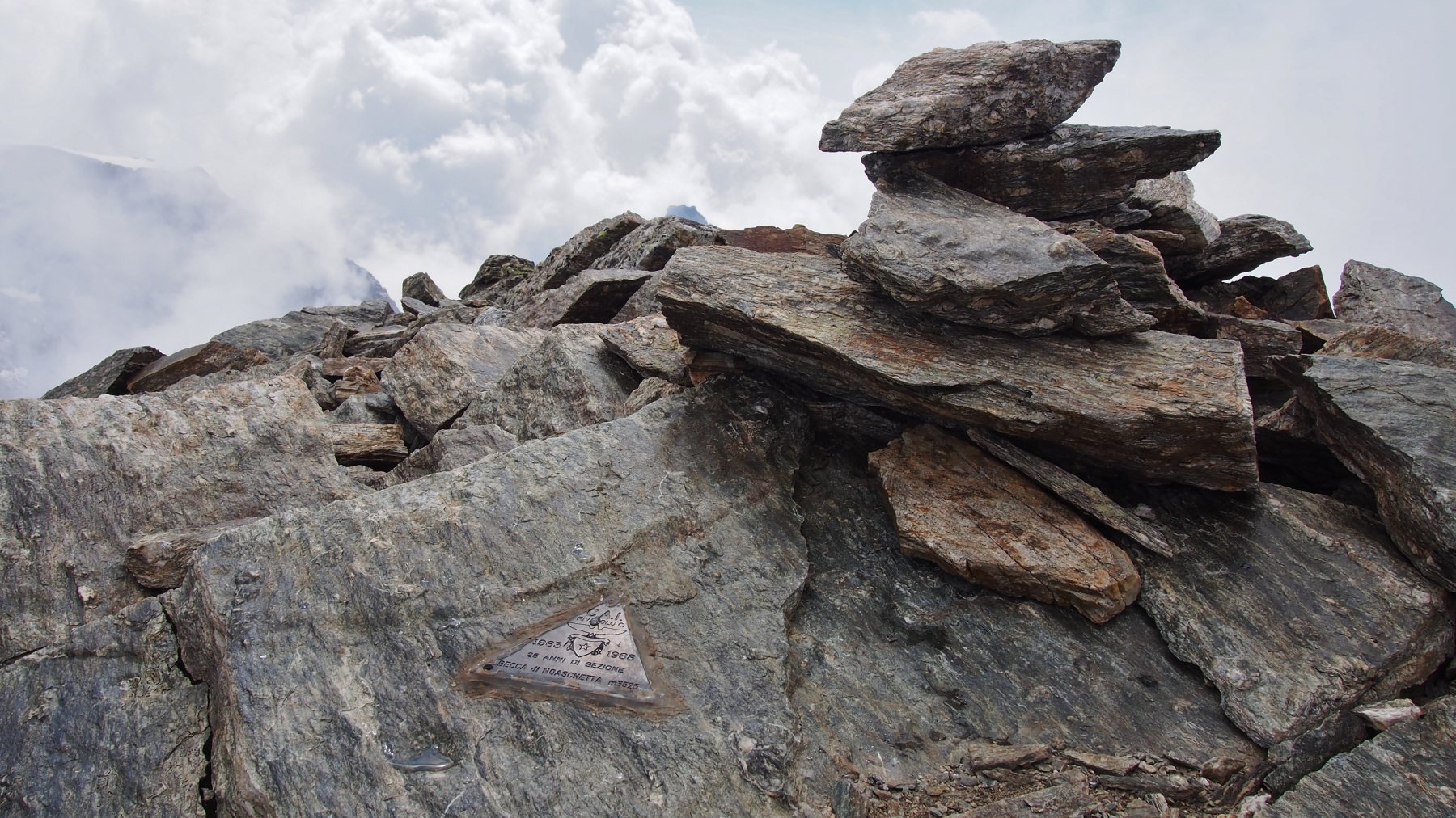 Lo si risale senza percorso obbligato, attenzione alle pietre mobili in caso di scarsa copertura nevosa, fino a raggiungere l’ampia cresta che porta in vetta (targa triangolare).