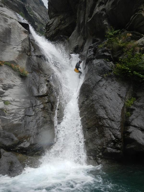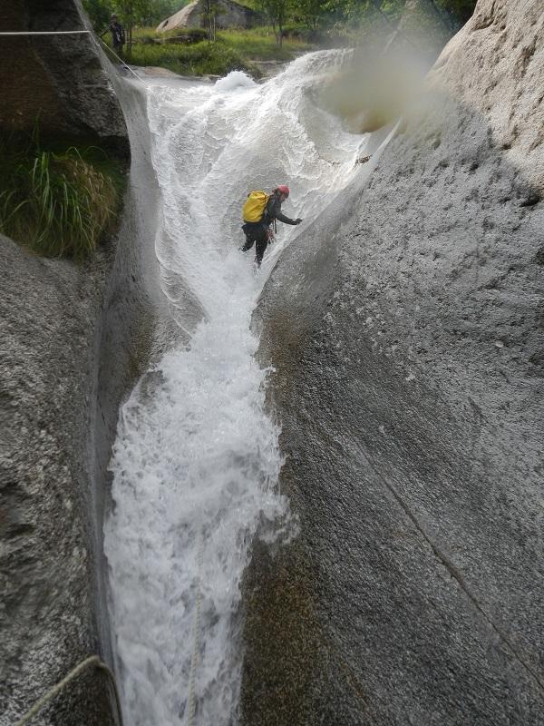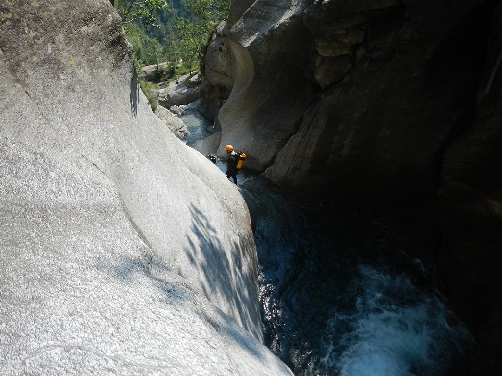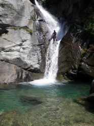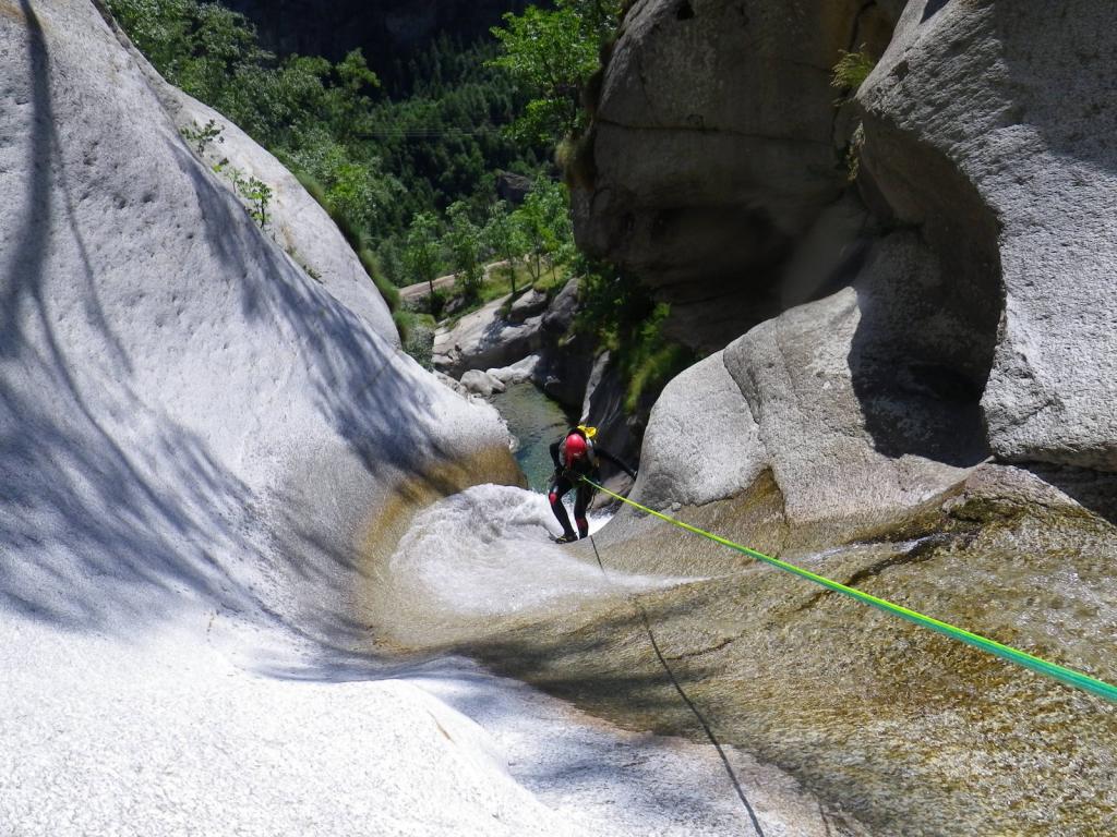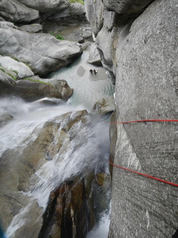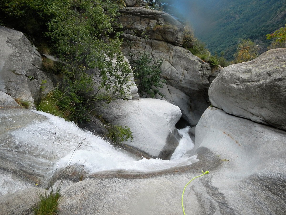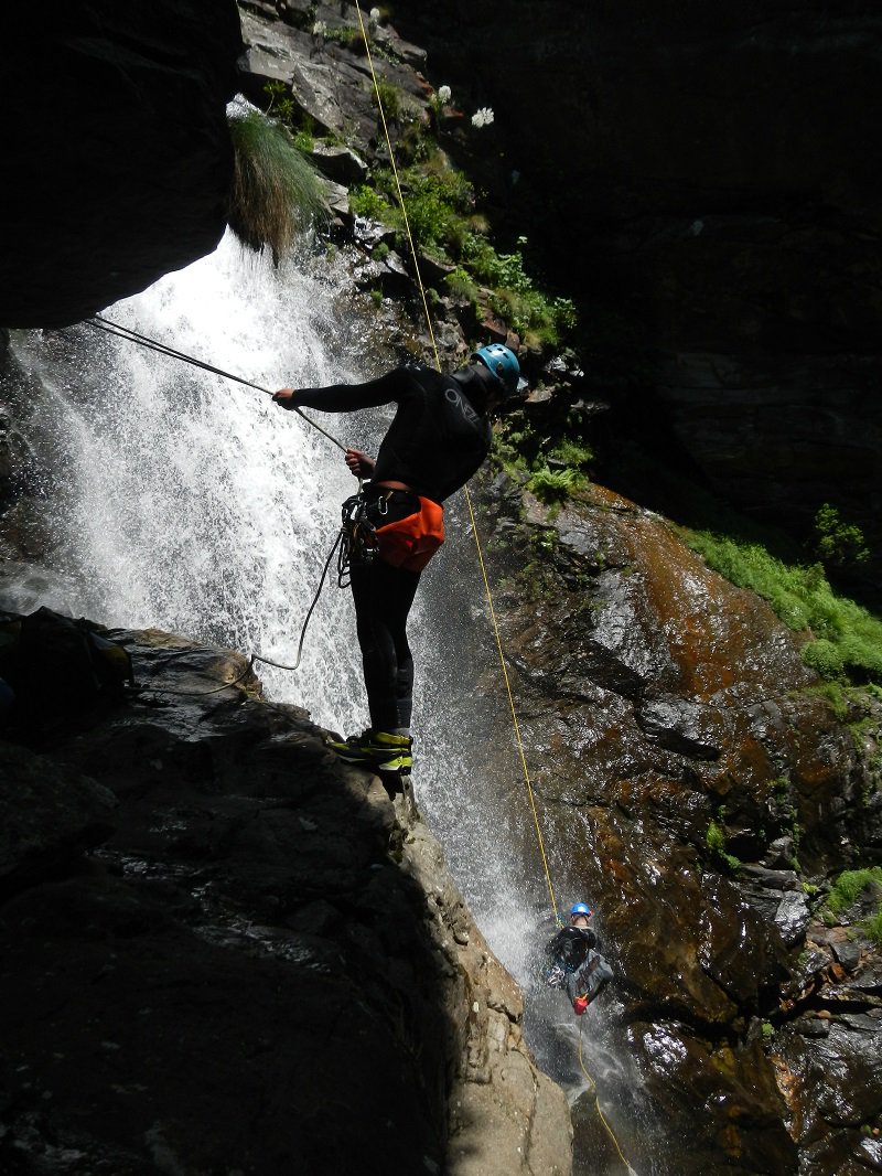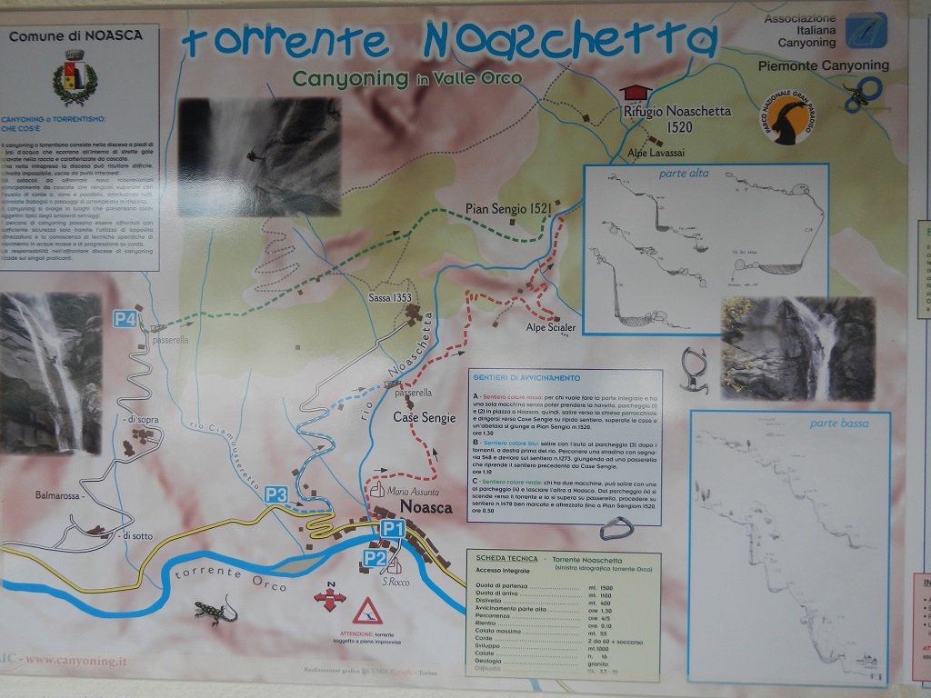 Discesa: la parte superiore del Rio Noaschetta presenta una serie di 6 belle calate molto interessanti e verticali con una C25, una C35 bellissima la C 18 (sesta calata) che presente nella seconda parte un bel toboga di 8-9 mt.
