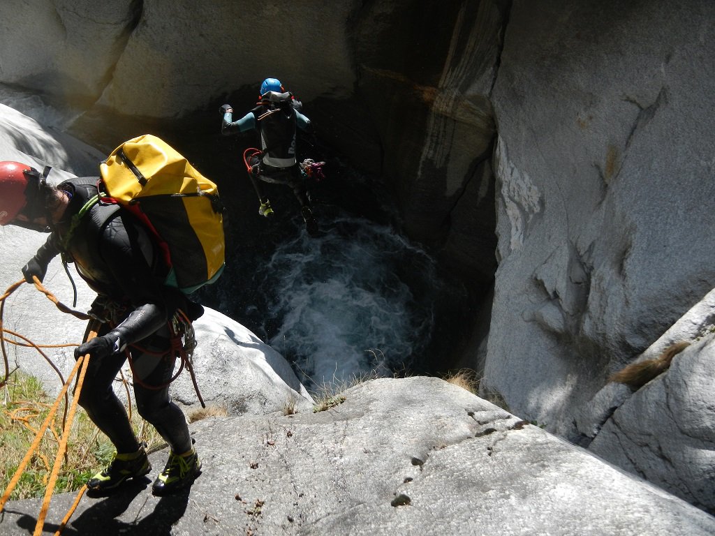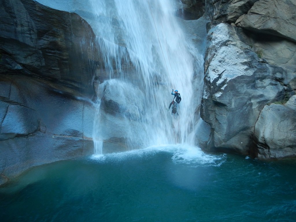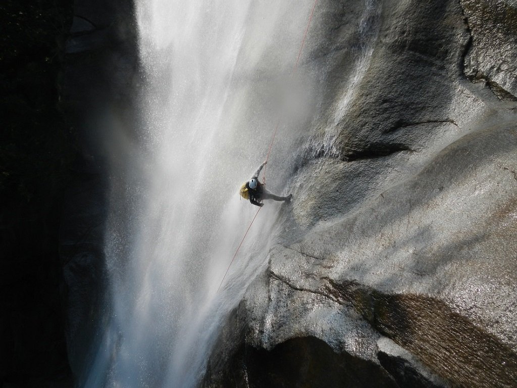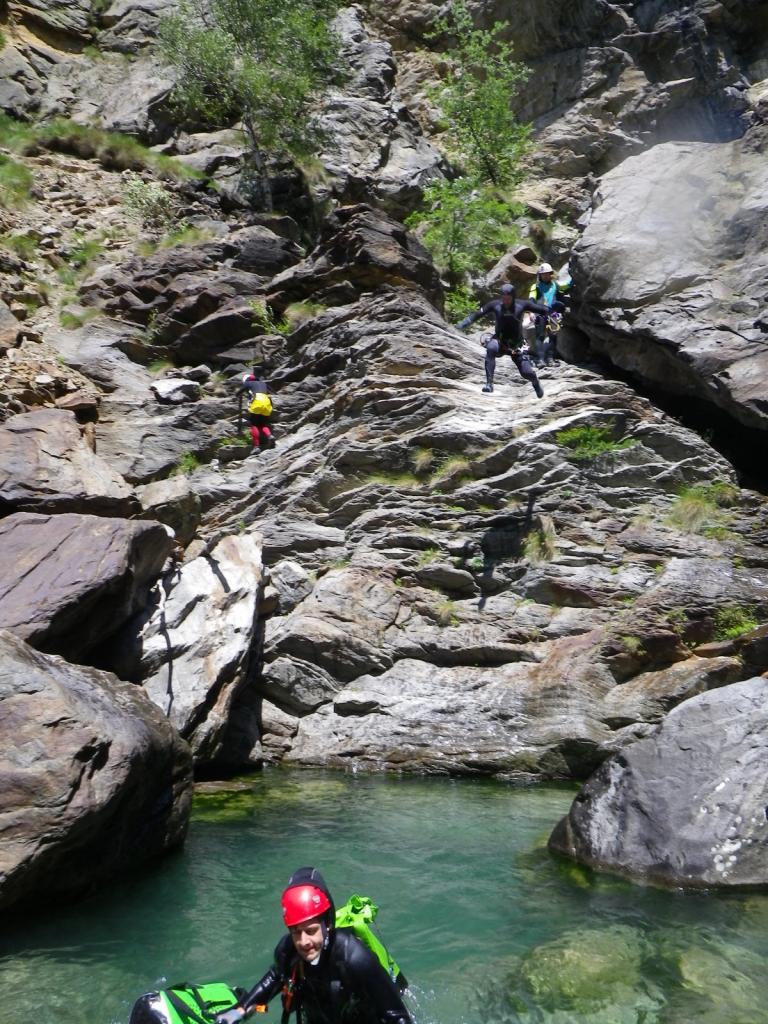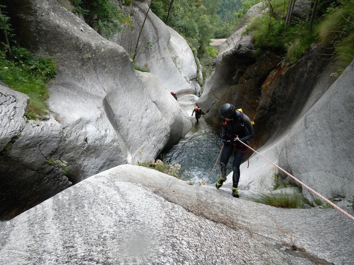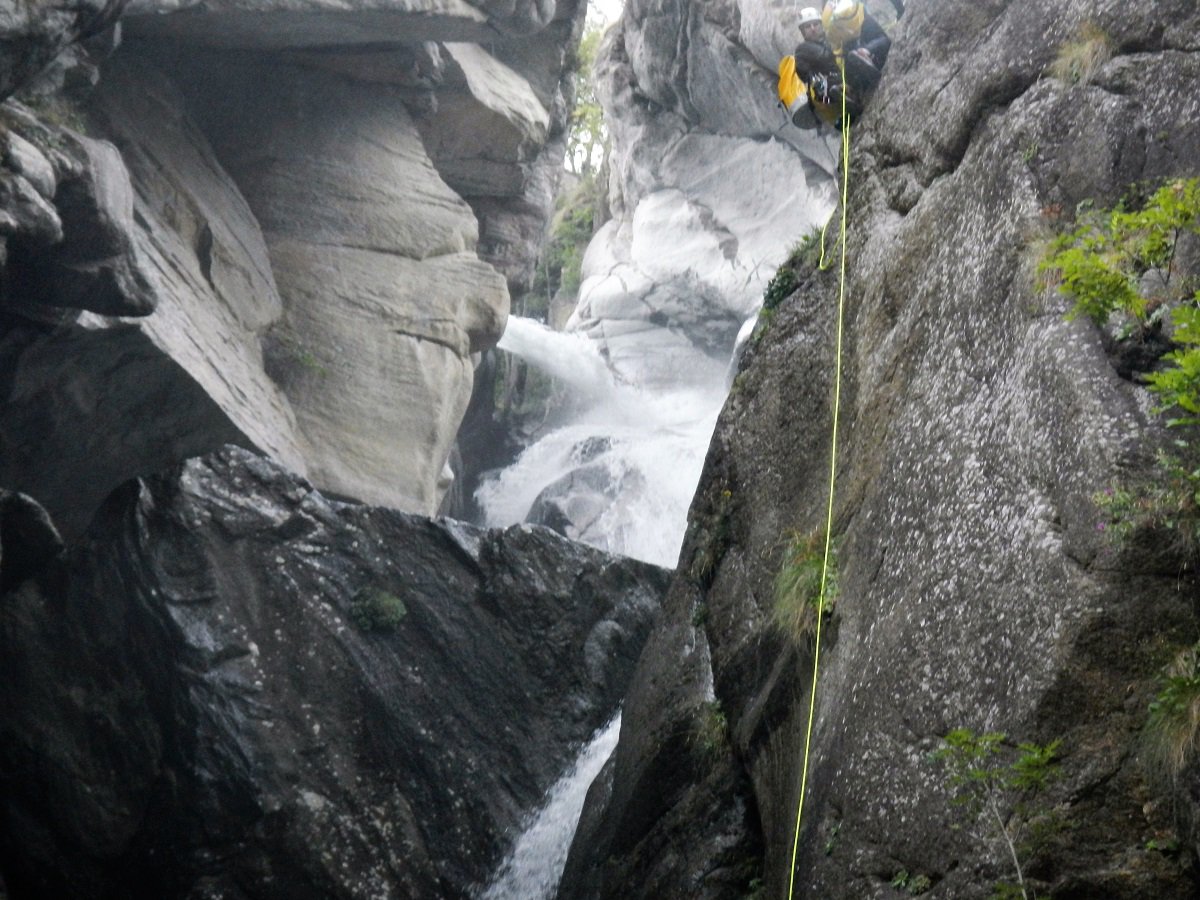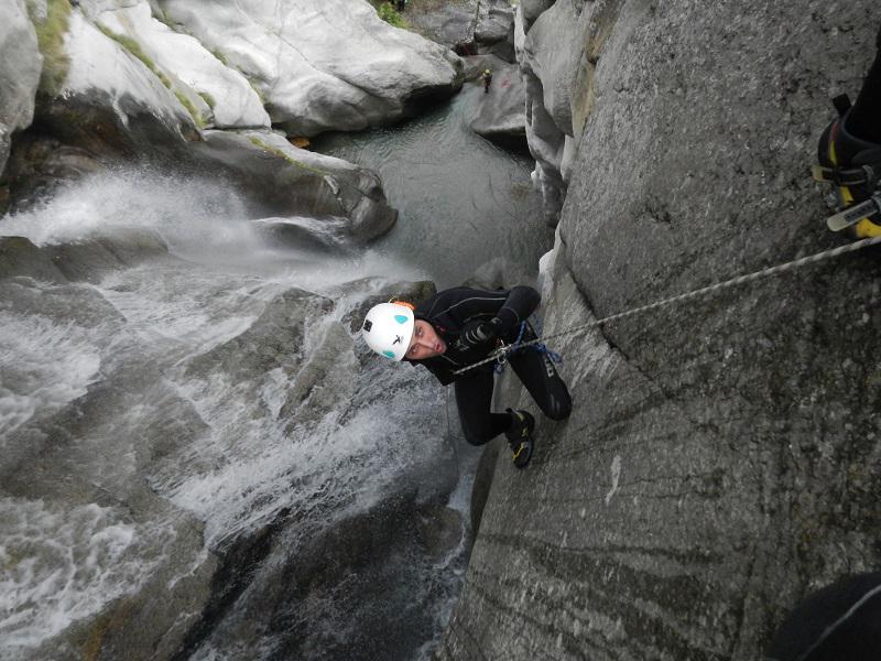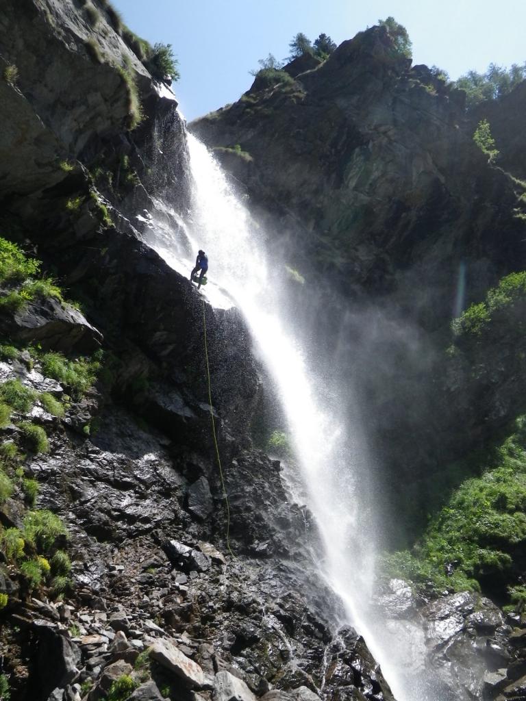 Discesa: la parte superiore del Rio Noaschetta presenta una serie di 6 belle calate molto interessanti e verticali con una C25, una C35 bellissima la C 18 (sesta calata) che presente nella seconda parte un bel toboga di 8-9 mt.