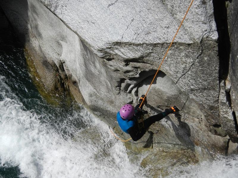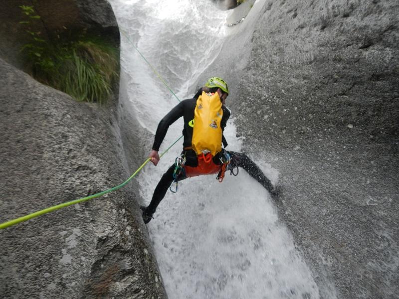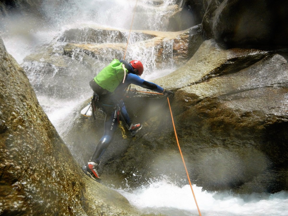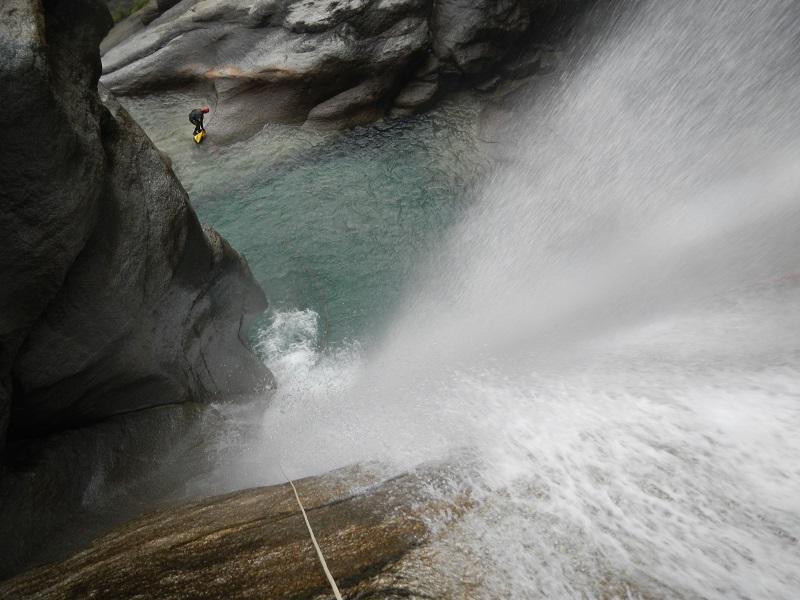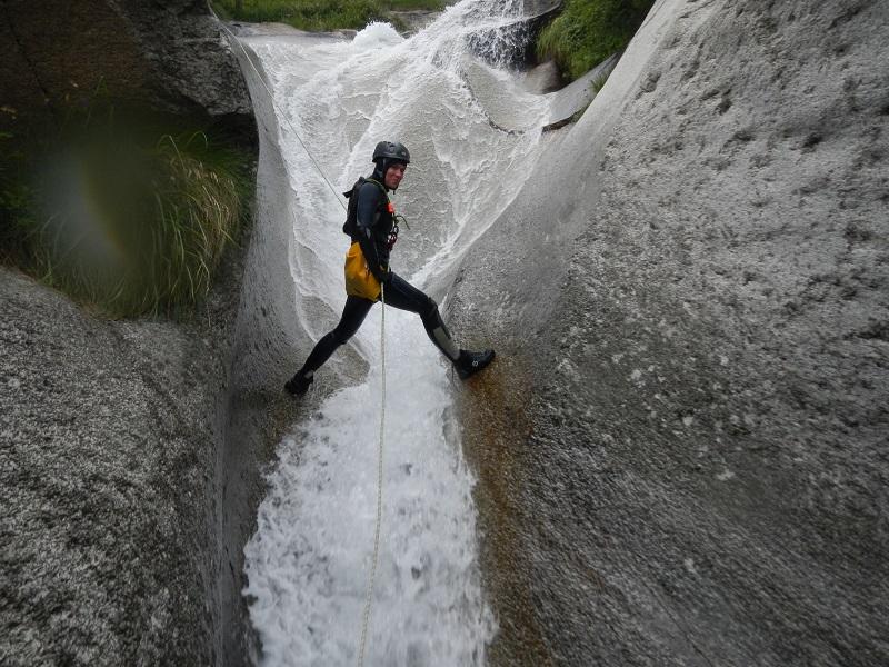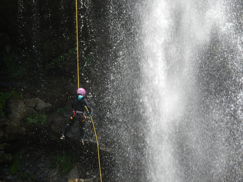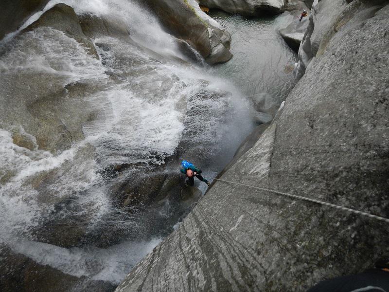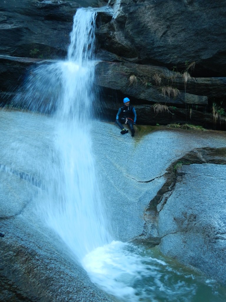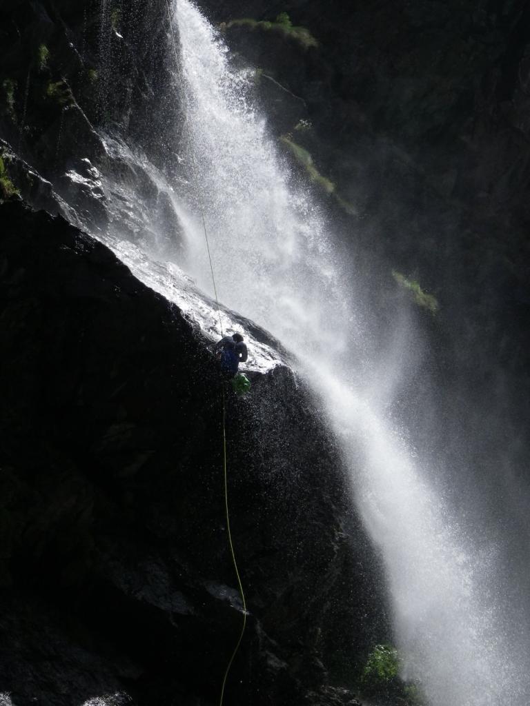 Discesa: la parte superiore del Rio Noaschetta presenta una serie di 6 belle calate molto interessanti e verticali con una C25, una C35 bellissima la C 18 (sesta calata) che presente nella seconda parte un bel toboga di 8-9 mt.
