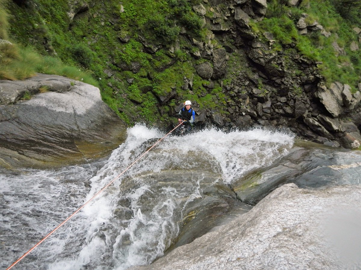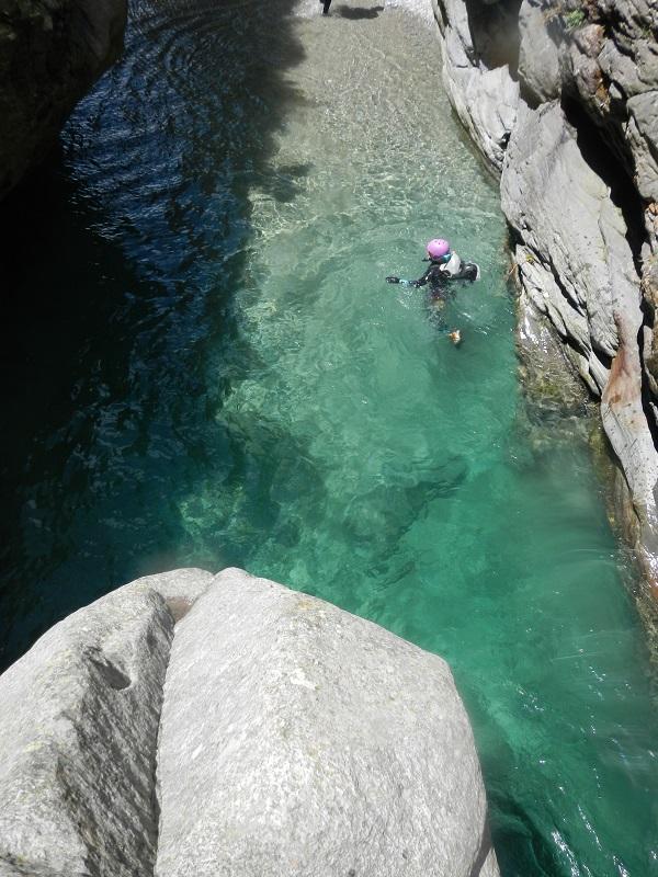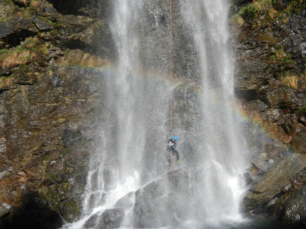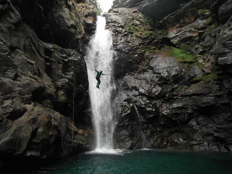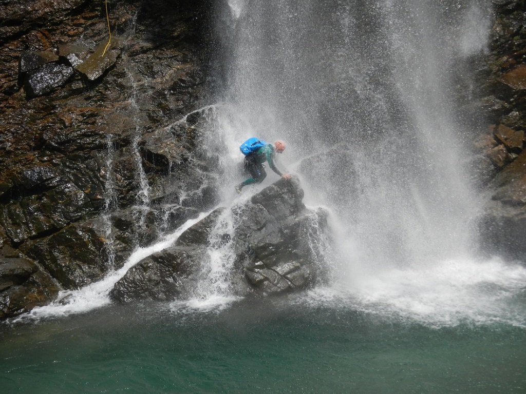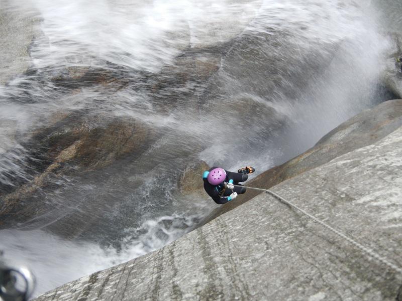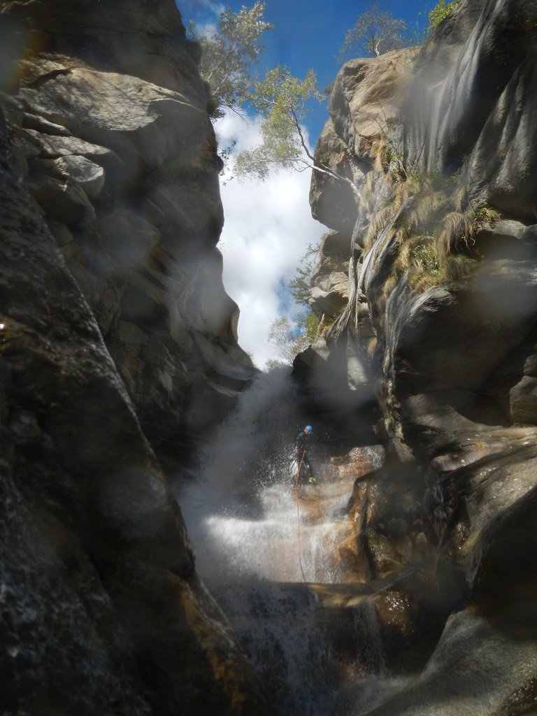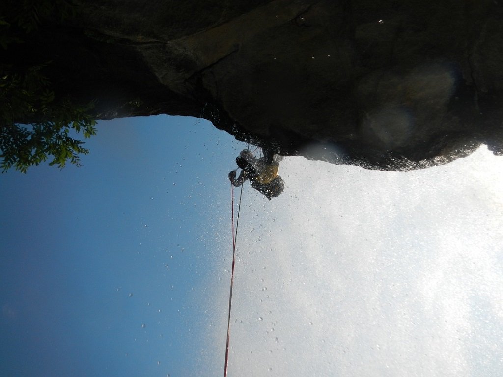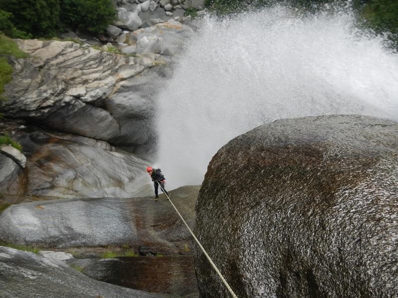Discesa: la parte superiore del Rio Noaschetta presenta una serie di 6 belle calate molto interessanti e verticali con una C25, una C35 bellissima la C 18 (sesta calata) che presente nella seconda parte un bel toboga di 8-9 mt.