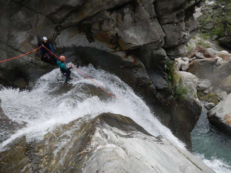 XXVII torrentisti nella stessa forra sono troppi e troppa era anche la portata, lo si capiva dalla grande vaporizzazione della prima cascata, molto sportivo e riservato a canyonisti esperti e navigati. Fisiologicamente poi, scendendo si fanno errori e la concentrazione cala rischiando anche incidenti seri!!! Le lunghe attese alle soste e il freddo (t9°/11°h2o),hanno indotto alcuni ad uscire nella parte bassa.
