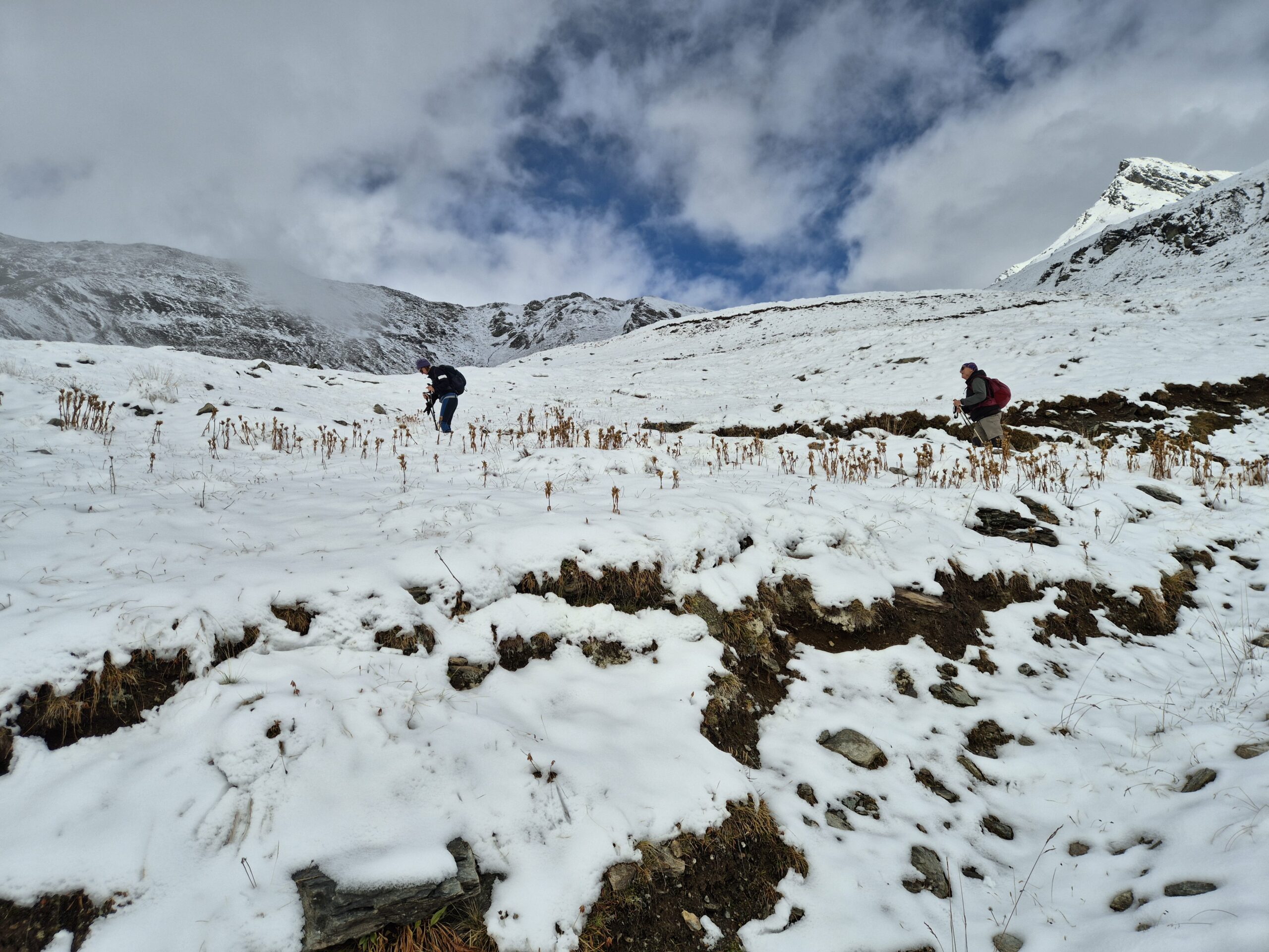Saliti per poderale fino a Tsa Nouva, dove termina la strada e dove ci siamo fermati; neve continua da 2200 m.