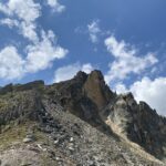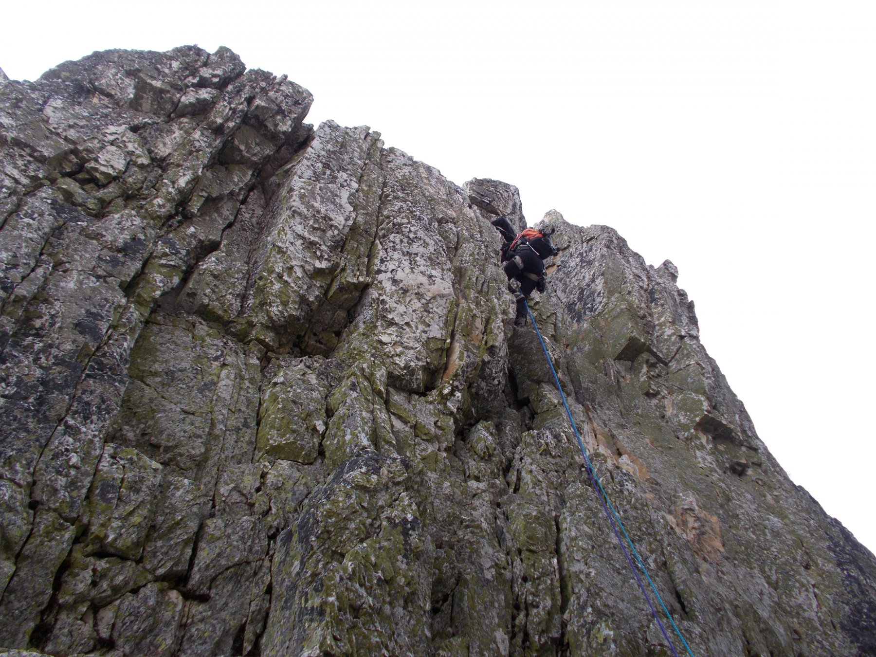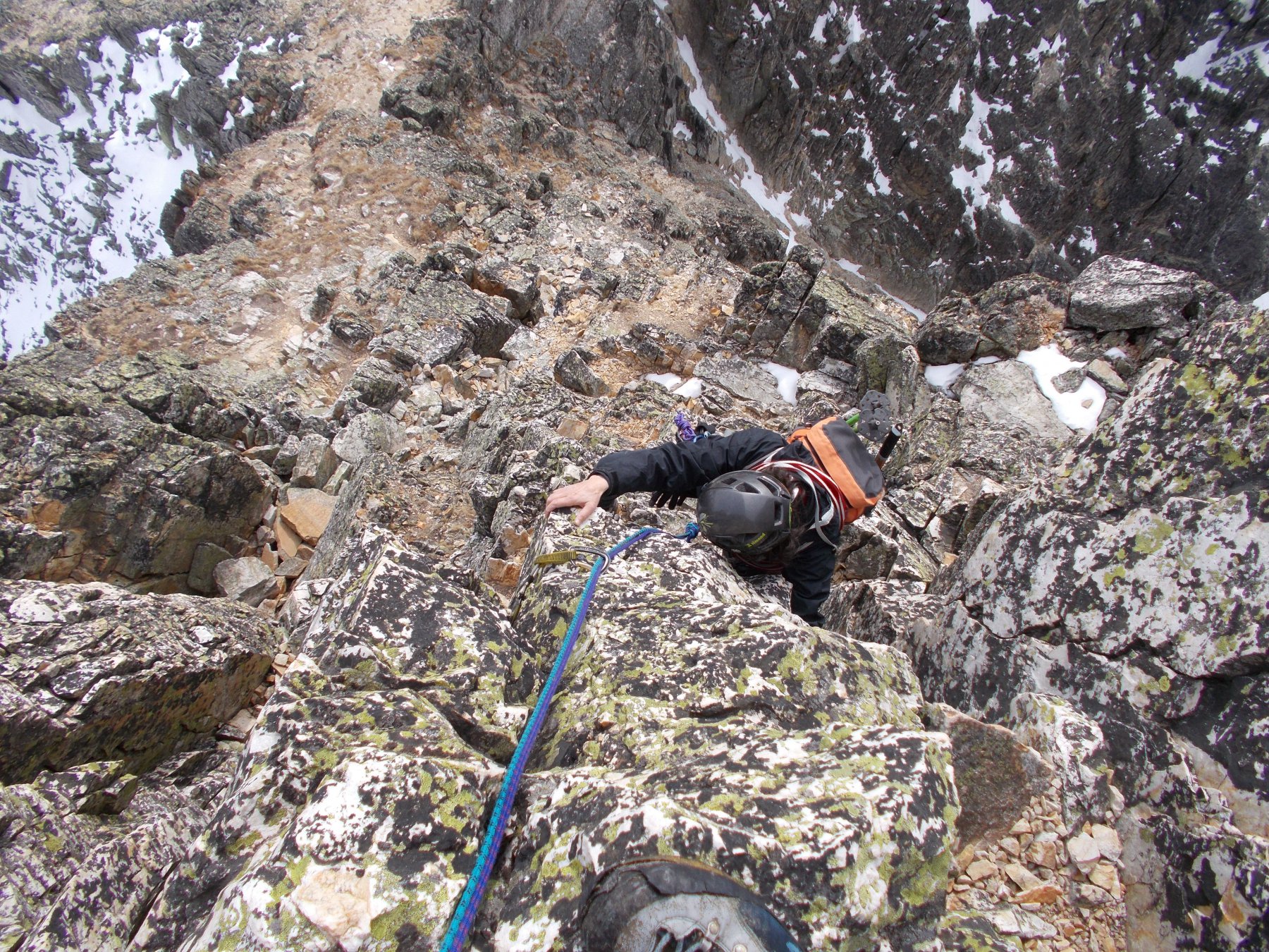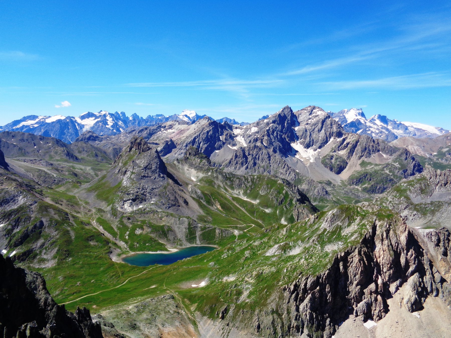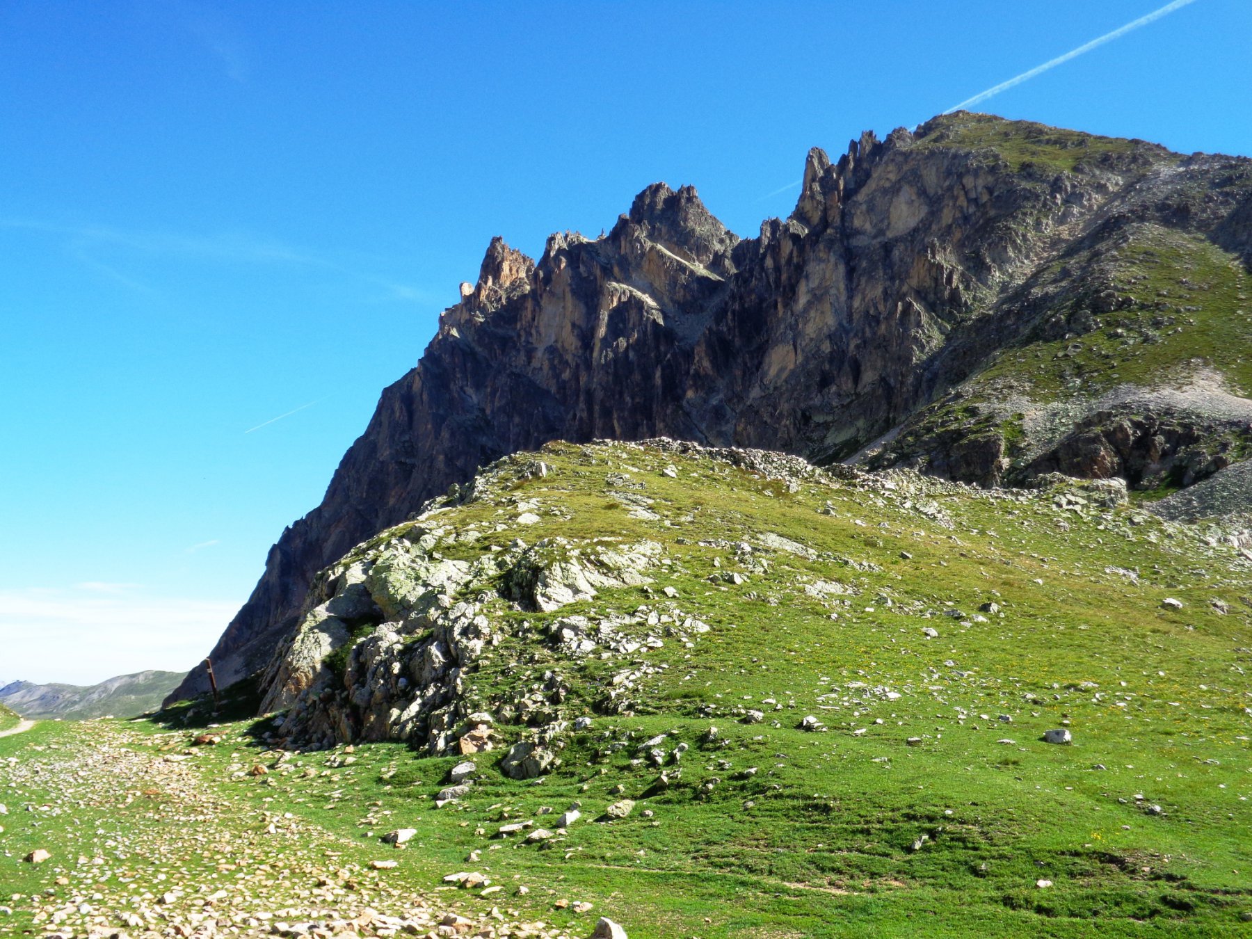 Superato il 4° torrione, detto la Blanche, si incontra la traccia della via normale che in breve porta alla base del risalto finale. In prossimità di una stretta breccia, dove si passa la via normale, si piega a sx per tornare ad arrampicare in cresta fino alla vetta, su roccia buona, un po’ esposta ma molto appigliata (numerosi chiodi e una sosta sull’anticima). Dalla vetta grandioso panorama dagli Ecrins fino al lontano Bianco.