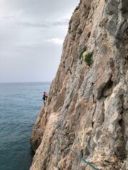 Clessidre e spit in abbondanza, si può sostare praticamente ovunque. Noi abbiamo usato una corda da 60m doppiata.
