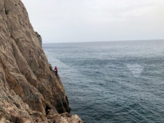 Arrampicata facile e divertente, con roccia sempre solidissima e ricca di appigli dappertutto.