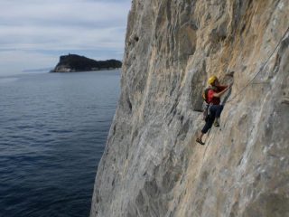 strana sensazione arrampicare con l’ aurelia sopra la testa e il mare sotto i piedi…