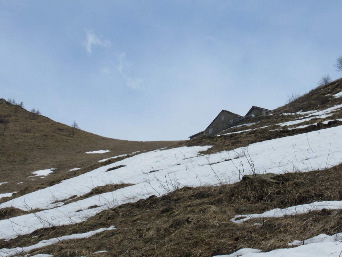 Al pannello informativo si è in regione Susey, si prosegue a sx percorrendo un tratto di strada asfaltata superando il borgo, si passa sotto alla condotta della centrale idroellettrica e di li a poco (comunque prima delle case di Fabiole 898m) si prende il sentiero a dx che invertendo senso di marcia sale all’alpe Pian de Gias dove in prossimità della fontana (vicina alla baita) il sentiero sale a dx, lasciando le baite a sx, sino ad arrivare all’alpe Pian Gregnit 886m. Passando sotto la baita e proseguendo verso sud si trova subito la mulattiera che sale a sx dir est e la si segue (a tratti scompare ma alcuni labili segni rossi riconducono sul giusto percorso) sino a oltrepassare un paio di baite a quota 1388m e 1440m; da quest’ultima attraverso una poderale si sale dir ovest ad incrociare la strada che proveniente da Barmette e Vert-Usevrt sale all’alpe Ciarma 1841m, percorrere la strada (da prima dir sud) che fa ampi giri (possibili tagli) sino all’alpe; superata si svolta decisamente a dx e si prosegue sino a superare l’evidente dorsale 1910m tra il monte Perassone il monte della Ciarma e il Bec di Nona.