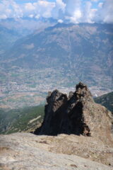 Si torna a scalare sul III, IV per rimontare diversi denti successivi, nominati come la Pouce e la Vierge… a dire il vero non ho capito bene quale fosse l’uno e l’altro: mi pare che i denti fossero il doppio. Personalmente lo ritengo il tratto più bello della via, sebbene anche qua si trovino alcuni tratti con roccia veramente brutta.