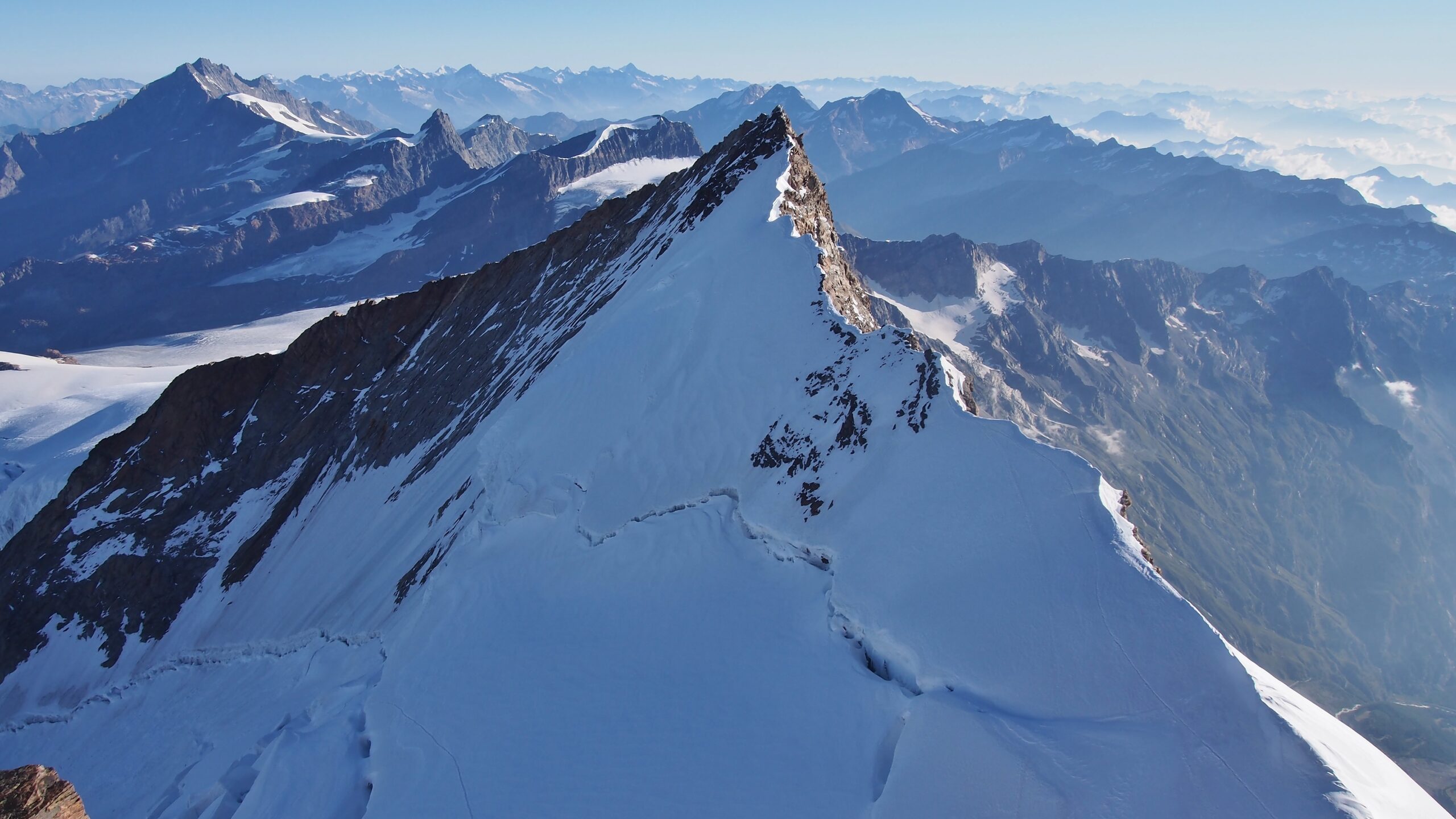 Cresta in ottime condizioni, roccia asciutta. Presenti due cordoni per eventuale sosta (e calata), ma si disarrampica bene (II, esposto). La discesa presenta solo un passaggio un pò ostico tra i crepacci, comunque meglio essere veloci considerando i bei seracchi che si hanno sopra la testa.