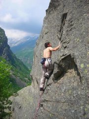 Grande affollamento oggi al Masso di Nosferatu. Salite Fessura Motti 6a, Confida ma diffida 5c+, A ciascuno le sue gocce 6b, la Normale 5b, Baci e abbracci 5b,e Volo di Notte 6a+. Su quest’ultima, dato che il nome si presta, abbiamo fatto qualche prova di teuta di “volo” con l’assicuratore semibloccante click – up. Non è male…