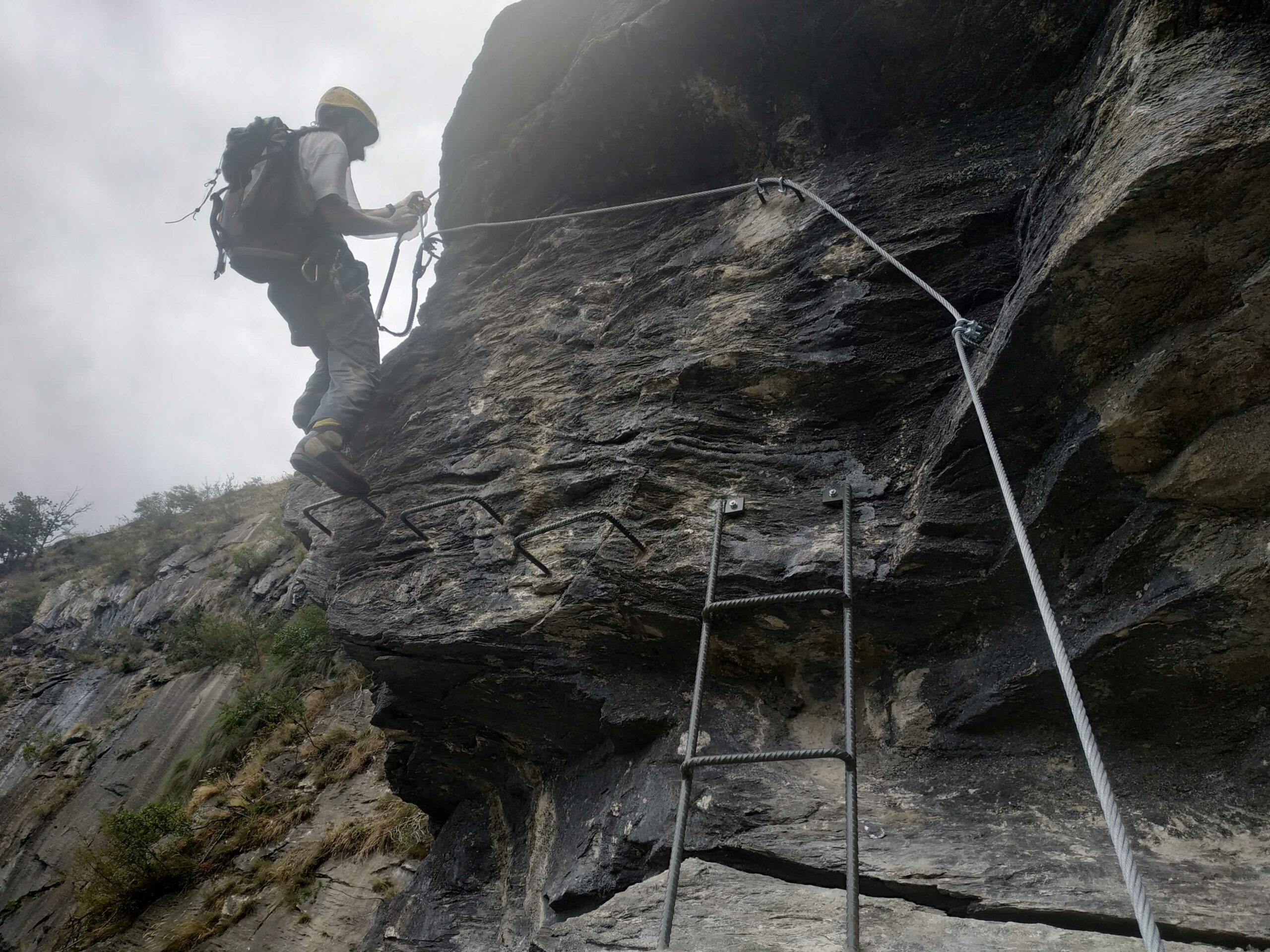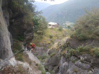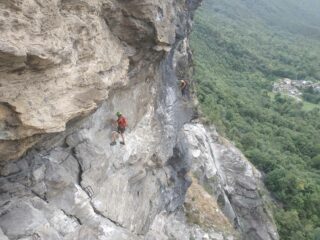 Ferrata in ordine, molto solida, ancora un po’ di pietrisco e polvere del trapano per via del recente allestimento. Frazionamento molto breve del cavo che costringe a continui e infiniti movimenti dei moschettoni. Percorso semplice che non regala grosse soddisfazioni dal punto di vista tecnico ma immerso in ambiente di notevole pregio panoramico grazie alle numerose e piccole cascate lungo il percorso, oltre alle 2 principali più evidenti. Oggi bel gruppo affiatato con ulteriori incontri a sorpresa lungo il percorso. Molta gente sulla ferrata, una decina di auto al parcheggio.
