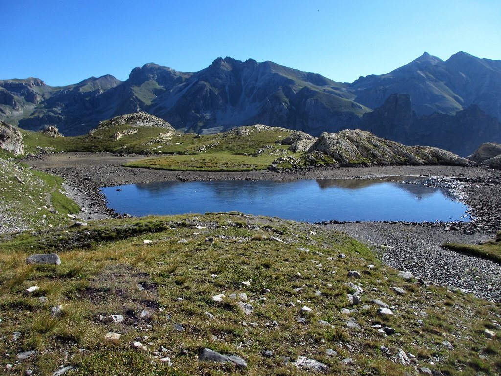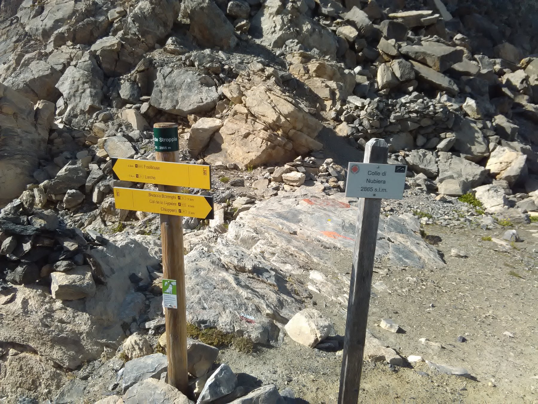 Da qui si prosegue nel vallone in direzione del Brec de Chambeyron, quindi si prende la diramazione per il Col de Nubiera (o di Stroppia),