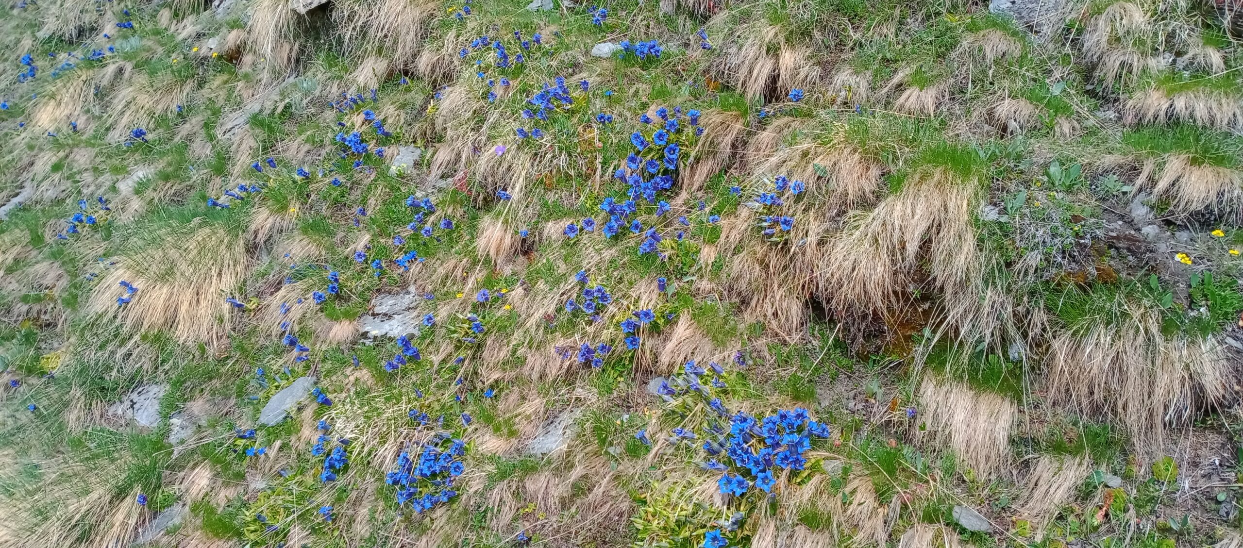 Gita quasi in solitaria: arrivato solo fino al colle, il nevaio della scorsa settimana è quasi scomparso vi è ancora qualche traccia di neve, che copre la traccia e lascia una zona scoperta (fuori traccia) molto viscida, fangosa e ripida: muoversi con cautela, che già il terreno fa schifo (come chi conosce bene la zona sa) basta un nonnulla per scaricare in testa roba di piccola e medie dimensioni, ma anche più grossa. Mi sono fermato al colle (4° volta con oggi al colle) e ho voluto scendere (tribolando: fangoso e bello ripido) subito i primi 90 mt, poi la traccia è più asciutta seppure ormai molto rovinata dal passare dal tempo. Per il resto micro-nevaio da attraversare in piano alla base del canale: tempo una settimana si asciuga tutto.. e quindi sarà più facile salire e scendere su terreno sempre sdrucciolevole ma non fangoso…