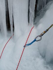 The ice fall is at the limit of climbable, large gap between the ice and rock wall, with the ice very thin and holes in places. If the temperatures don’t drop it will soon be unclimbable. Deep snow on the hike in that was difficult even with snow shoes.