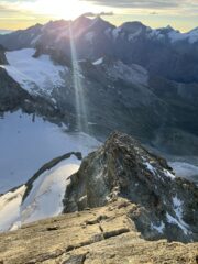 Cima tutta per noi, ci godiamo il panorama su tutti i giganti del Vallese.