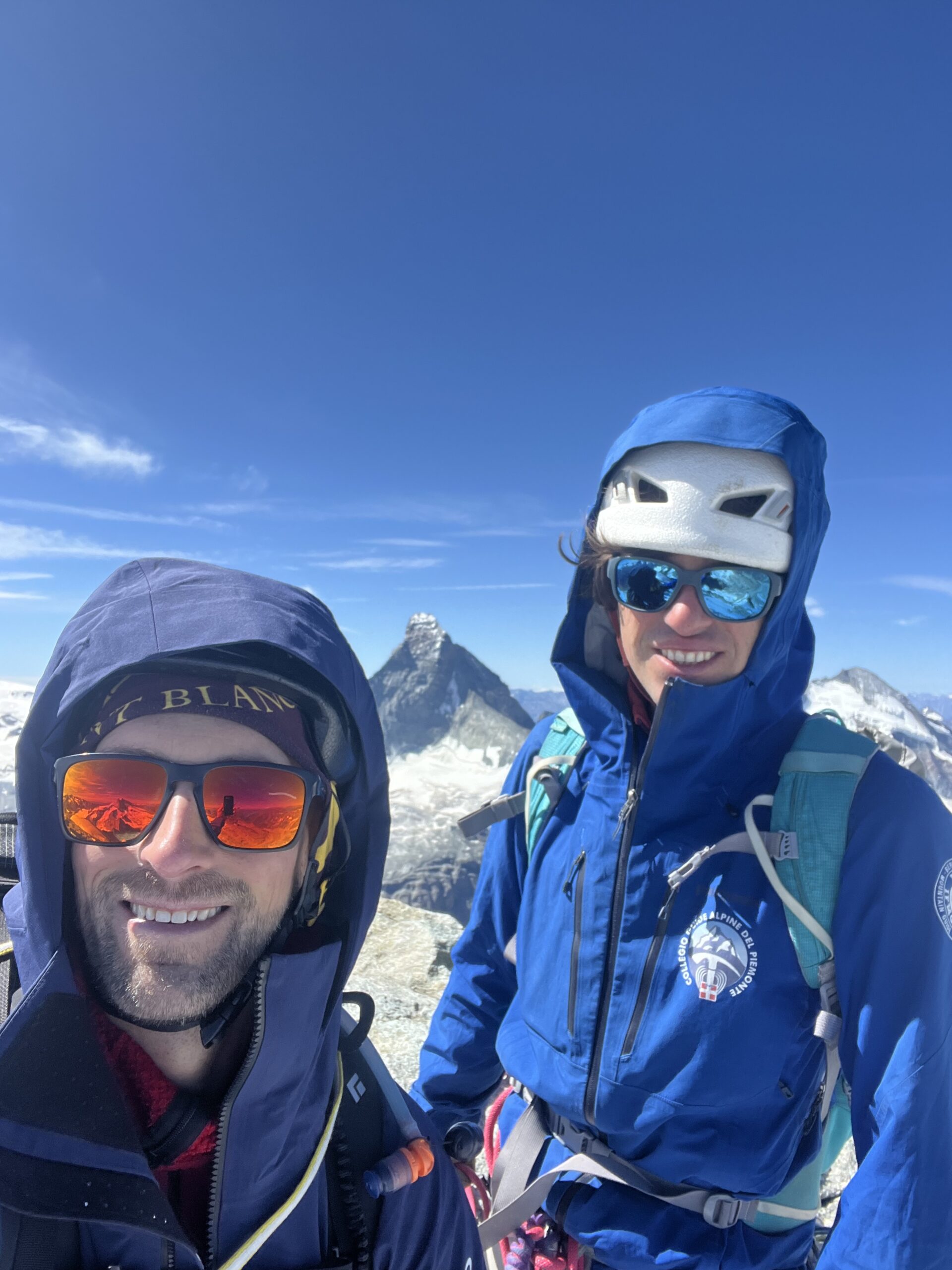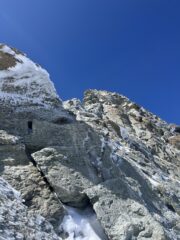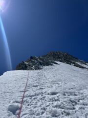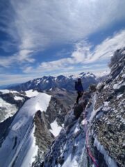 Il giorno prima ha nevicato e incrostato tutta la cresta di ghiaccio, si mettono i ramponi dalla Wellenkuppe e si tengono fino in cima, in queste condizioni salita non banale, ci abbiamo messo 7 ore dalla Rothornhutte.