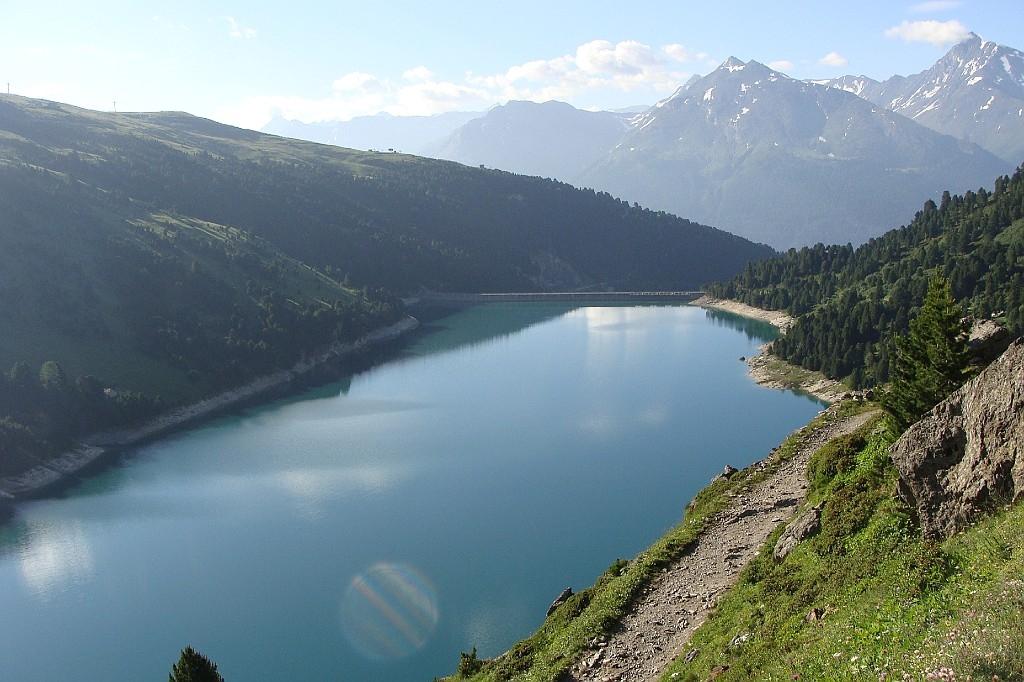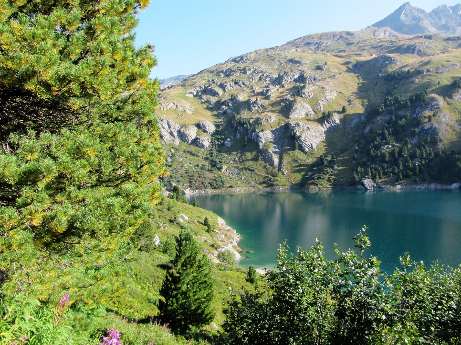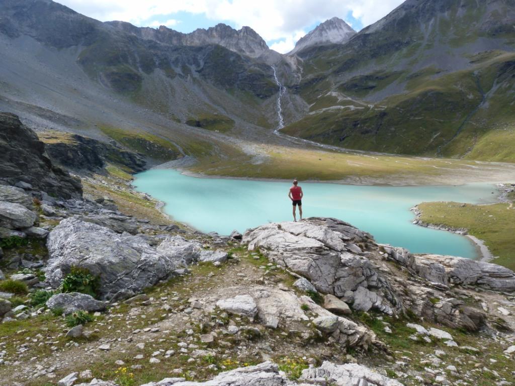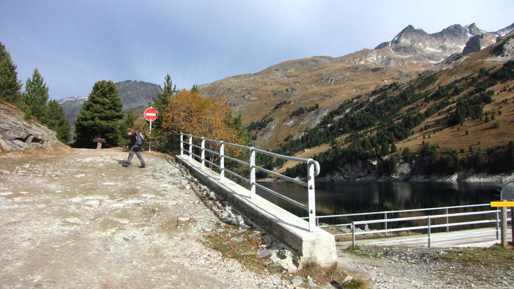 Dal parcheggio sotto la diga di Plan d’Amont si segue la strada sterrata che sulla sinistra raggiunge lo sbarramento della diga e prosegue in leggera salita sulla sponda sinistra del lago, andando poi verso destra, passando sotto una bastionata rocciosa e raggiungendo un vasto pianoro a quota 2250 m. Si trascura un sentiero che si stacca sulla sinistra (sale verso il Col de la Masse e verso la Pointe de l’Echelle) piegando invece a destra, attraversando un ponticello in legno (Pont de la Sétéria), e salendo un dosso erboso il sentiero raggiunge un altro bivio con cartelli indicatori.