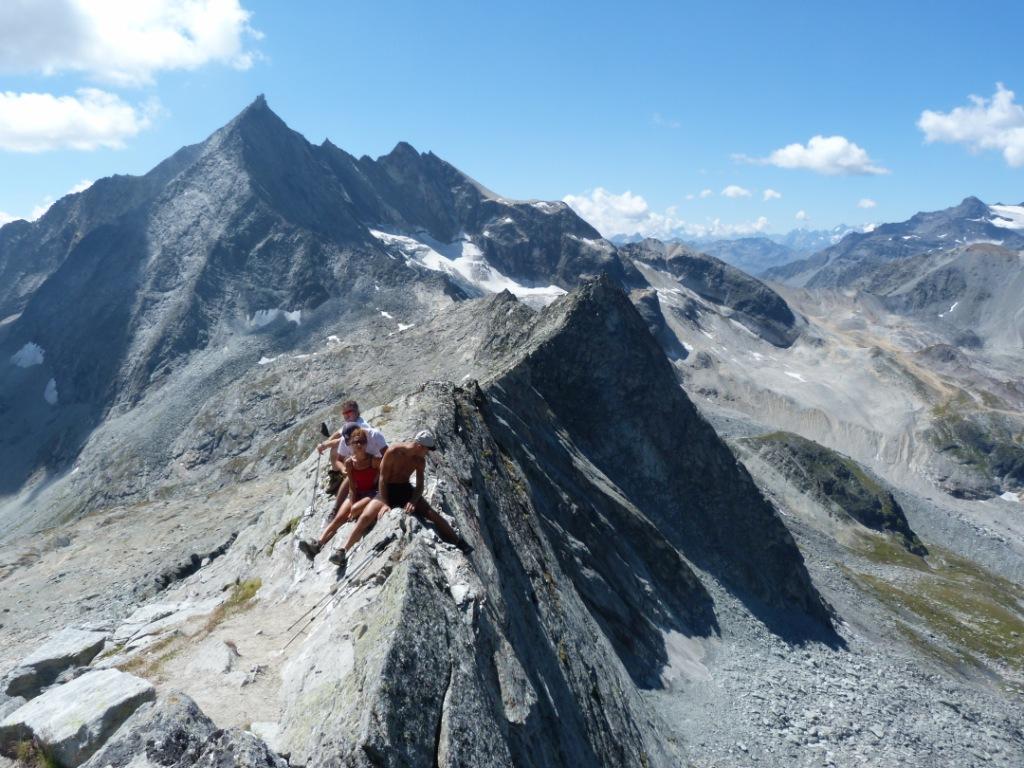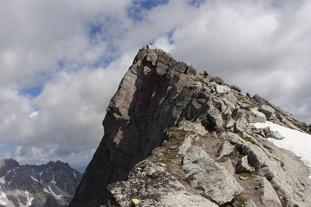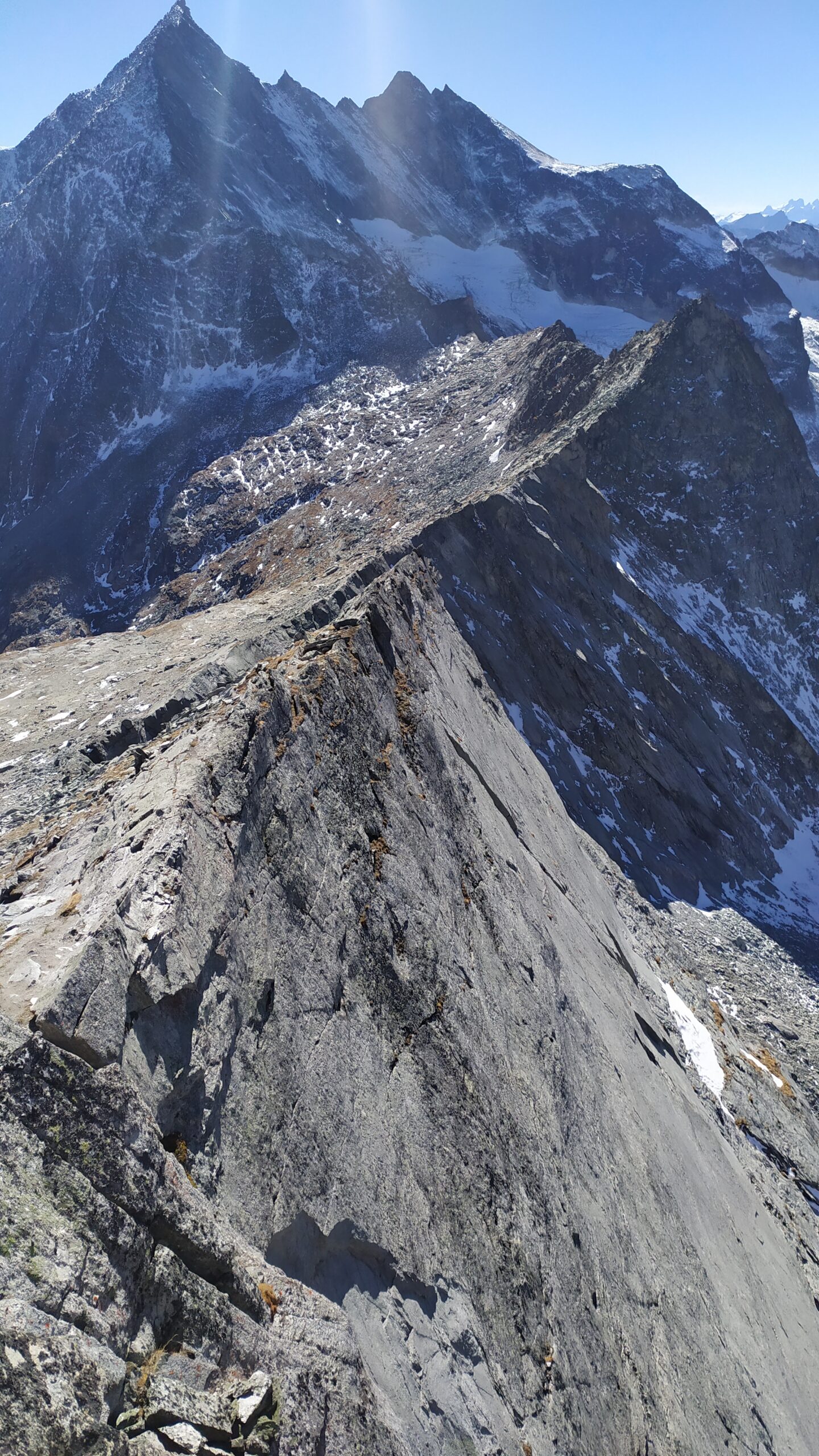 Dal colle è anche possibile percorrere sul filo la cresta Sud, con alcuni facili passaggi di arrampicata nella parte alta (EE/F).