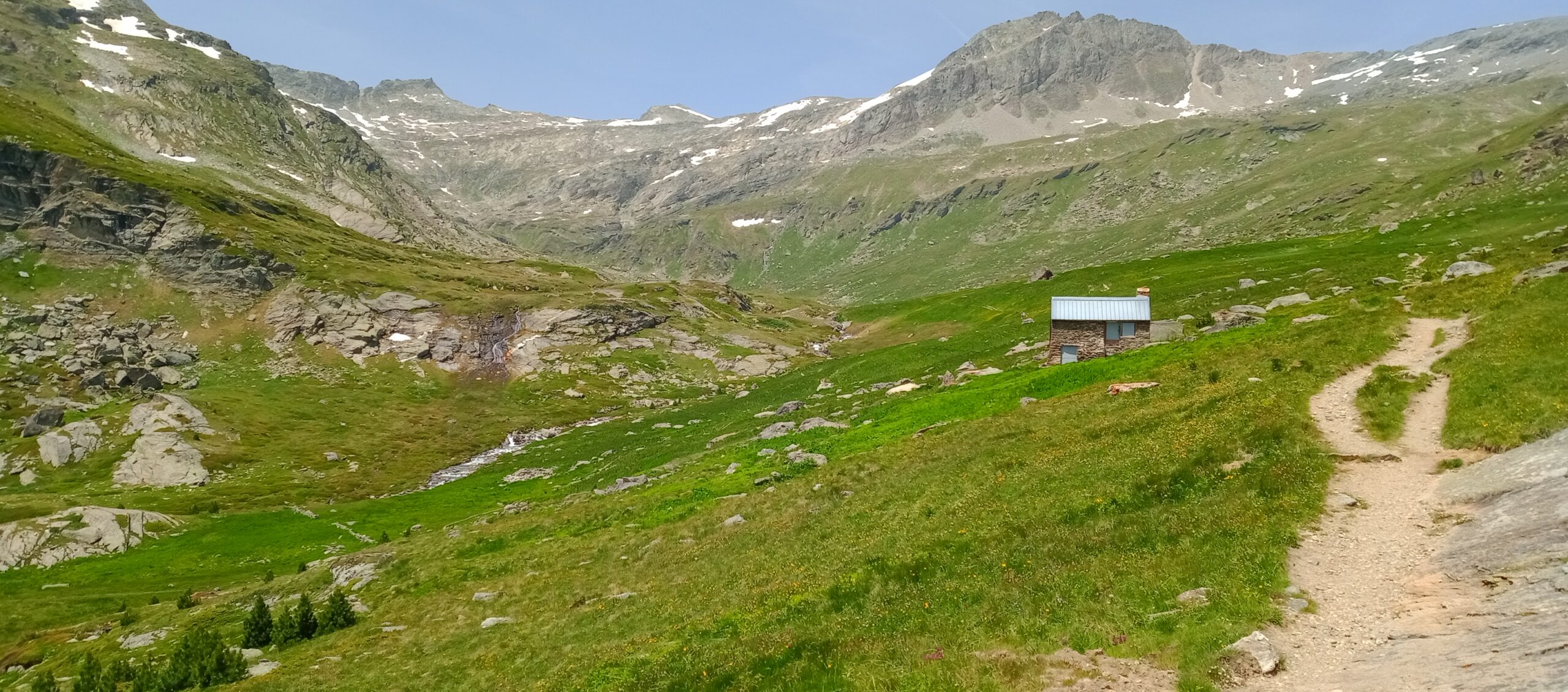 Si prosegue nel pianoro, dove il sentiero si porta verso destra, raggiungendo prima la chiesetta della Notre Dame des Anges m. 2312 e poi con percorso evidente conduce prima al vecchio Refuge du Fond d’Aussois e poi al rifugio nuovo, posto a quota 2330 m. Dai rifugi il sentiero prosegue la risalita del vallone prima verso destra e poi a sinistra portandosi sotto ad una bastionata rocciosa (segni gialli e ometti).