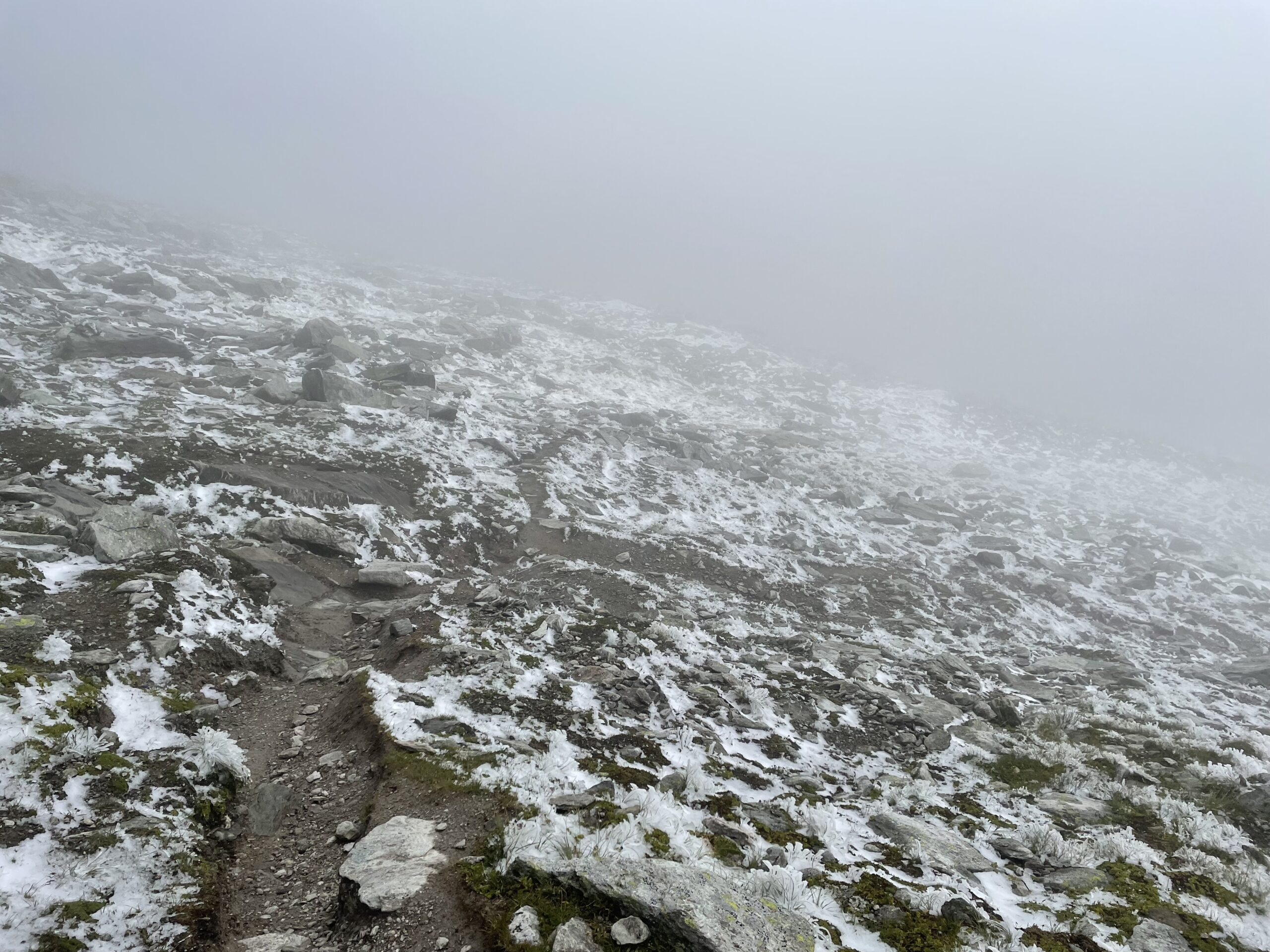 Oggi il meteo in Francia non era dei migliori, neve sotto i tremila, cime coperte e vento forte, quindi arrivato al Colle del Moncenisio ho scelto una vetta che mi permettesse di provare ad arrivare in cima e così è stato. Ho trovato neve, poca ed in via di veloce scioglimento, da quota 2800 ma le nuvole basse purtroppo sono rimaste e mi hanno impedito di vedere il panorama nonostante il vento impetuoso che speravo spazzasse le nubi.