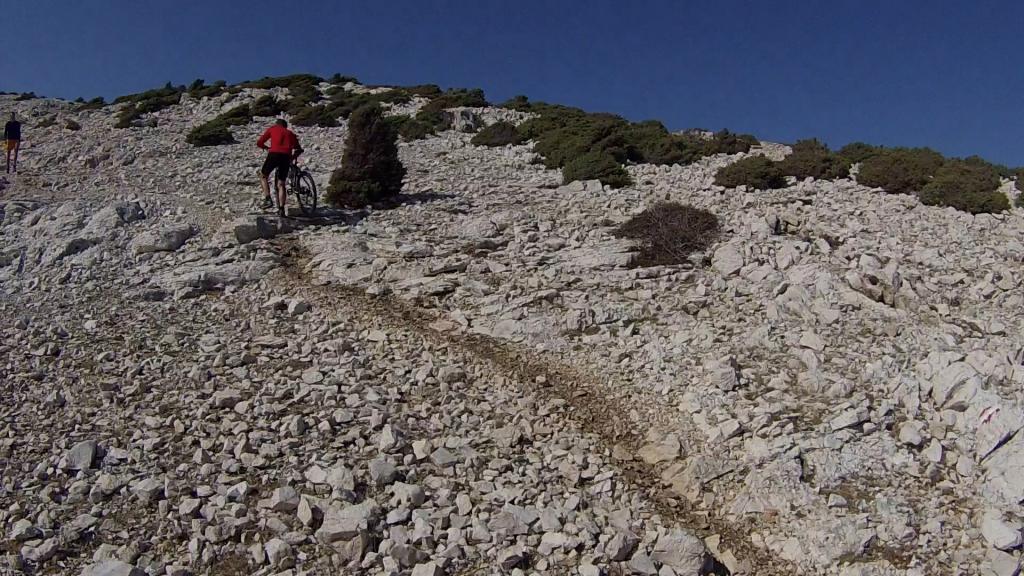 sempre in direzione S prima a spinta 20/30% poi in sella fino a quota 400m circa poi di nuovo salita al Vh. Hlam 482m, discesa su sassi e ciuffi fino ai 350m.