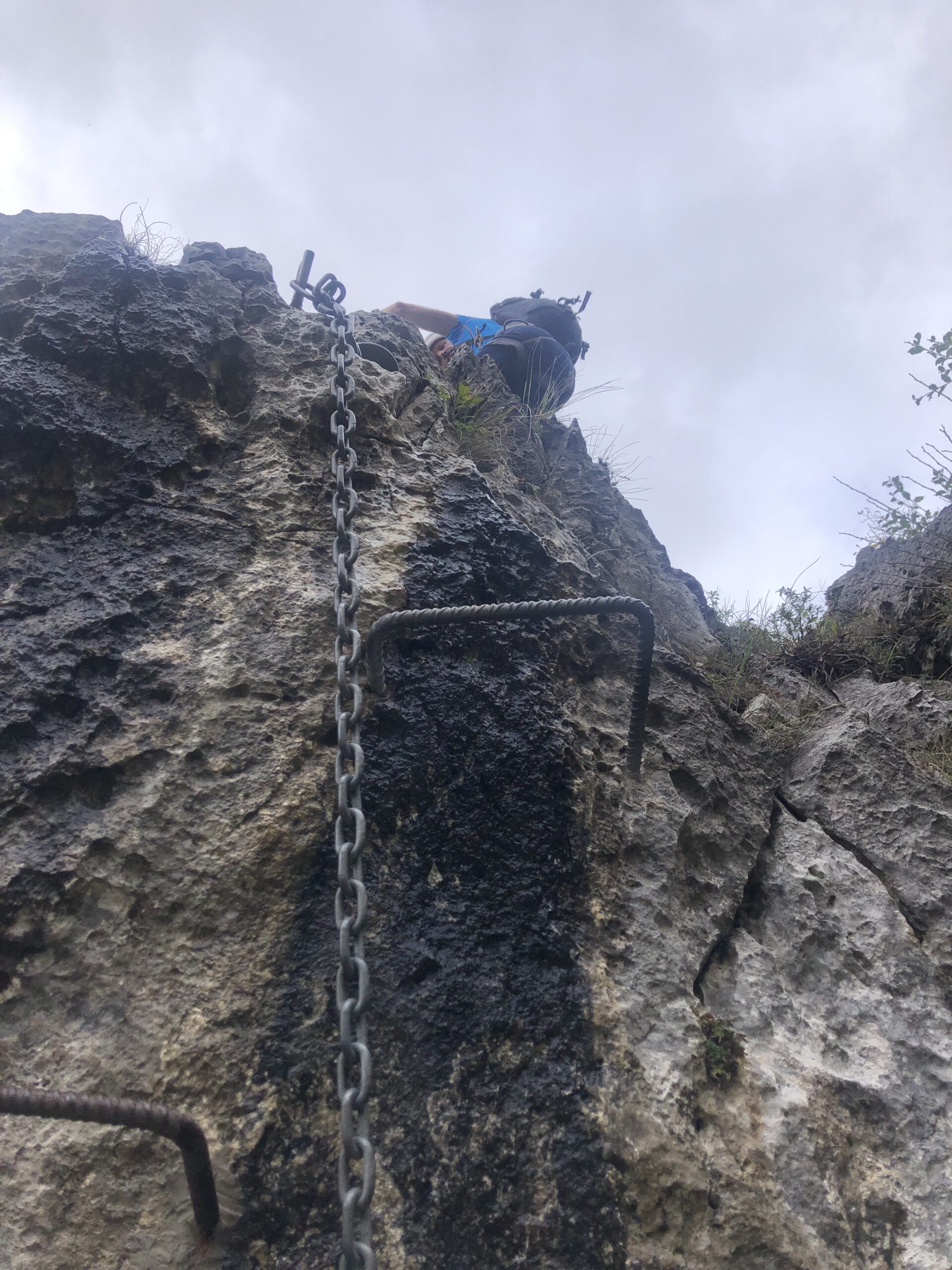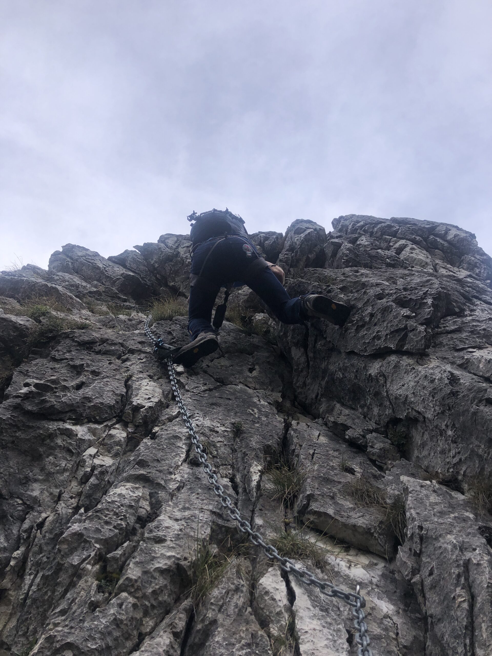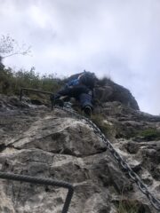 Ferrata molto bella, verticale, espost e impegnativa che in molti punti richiede grande sforzo di braccia su sbalzi aggettanti ma che per molta parte consente di arrampicare senza cavi divertendosi molto. Fatta in due ore ma occorre comunque un decente stato di forma.