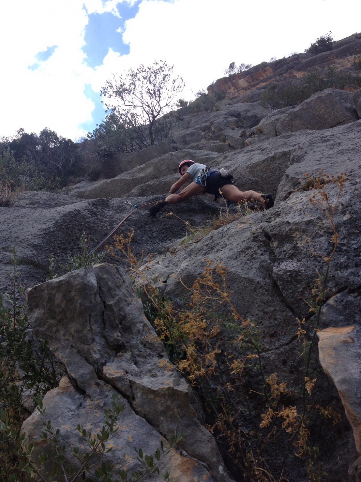 Dalla sosta proseguire in diagonale verso sinistra sino alla base di uno spigoletto che si supera con arrampicata