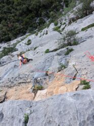 In ascensione verso destra con bella arrampicata atletica in alcuni passaggi.