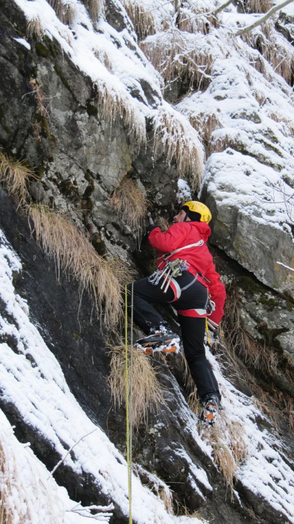 L1: erba verticale (M4), sosta su ghiaccio in un anfratto;