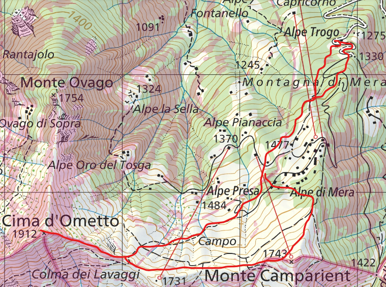 Ometto (Cima d’) da Alpe Trogo per il Monte Camparient e Colma dei Lavaggi