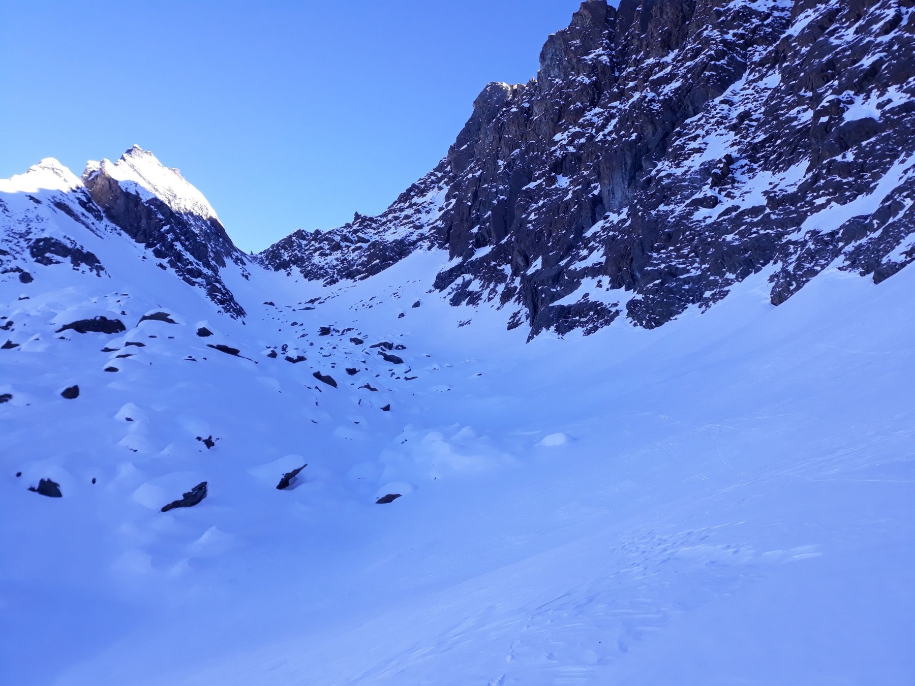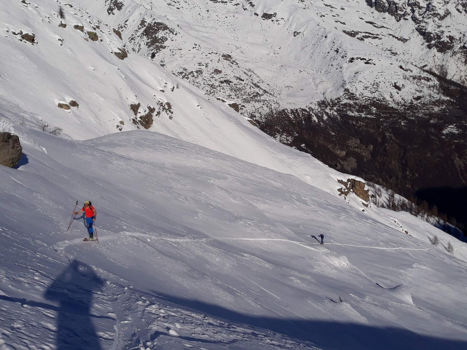 Da compiere con neve assolutamente sicura e solo dopo che si sono staccate le grandi valanghe di Sea.