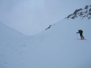dopo buona colazione alla pasticceria di demonte (solita)risaliam il vallone su strada veramente ghiaccio puro da dire se montiam catene e meglio !!!!za mai.e siamo li alle 8 e non un anima . tempo bello ,man man che si sale siam passati da -3° A8° e battendo traccia su neve (speciale!!!!!)riusciam anche azzeccare itinerario logico e come descitto da aruga , dopo un notevole spostamento arriviam al colle sale’ e la meteo si guasta iniziando a piovigginare e nuvole che scorrono a 2600m. lungo il percorso valanghe ne son cadute un po da tutti i versanti nei giorni scorsi ,quindi!!!meglio. pero e una gita da valutare in base alle nevicate ecc.. e poi ms forse e poco.la cima sara x la prox ,quindi ridiscesi su neve buona parte alta ma poca visibilita,e sotto crosta (tente tente)infine su stradina scorrevole remando leggeri. e un bel posto e gita. x sciare un altra volta migliore. ps i versanti a sud spelacchiati . gita fatta con fratello marco x augurarci un buon anno .