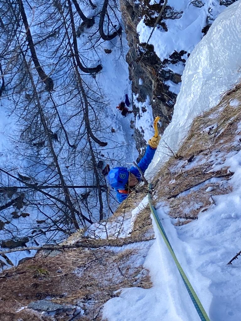 La cascata è in buone condizioni solamente con ghiaccio un po’ spaccoso.
