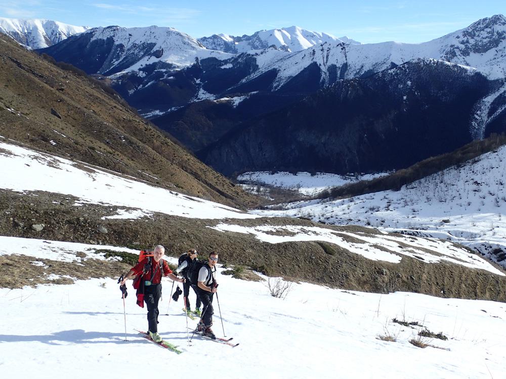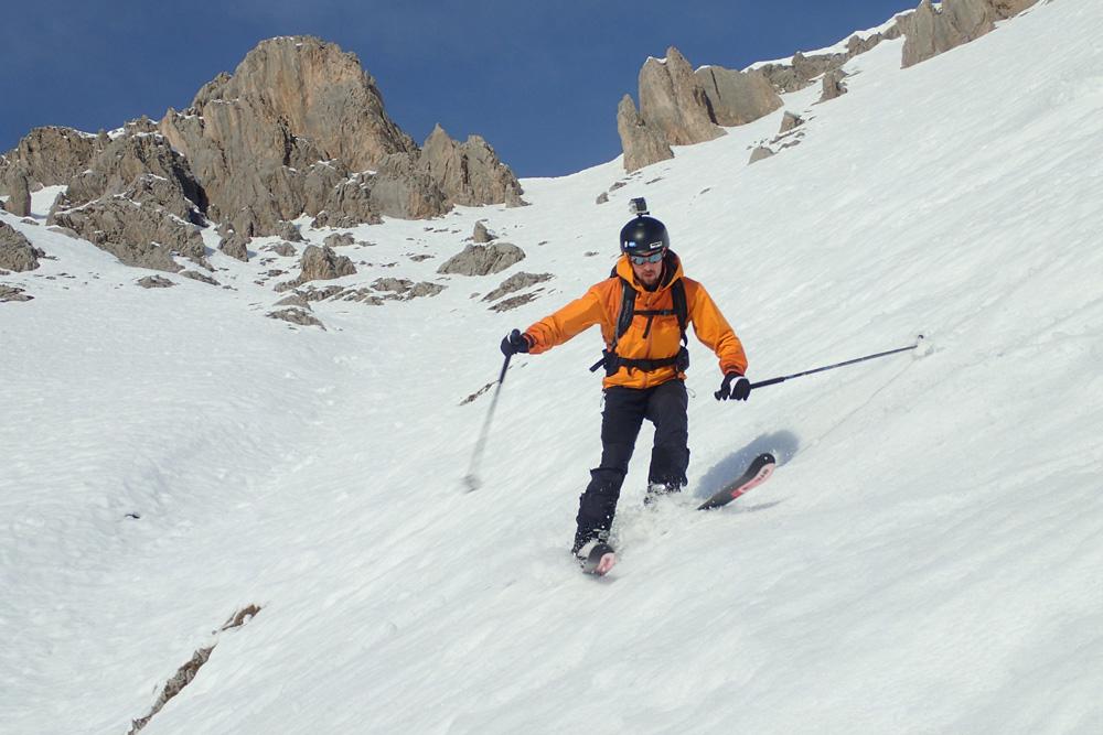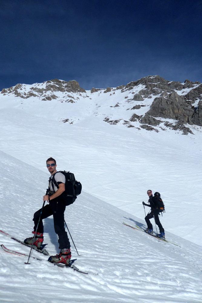 Il mio socio checco ha descritto bene il bel giro ad anello. In discesa per i primi 50m abbiamo trovato ancora farina, poi nel canale S una splendida neve trasformata che ,man mano che si scendeva, diventava sempre più marcia e passare infine ad una crosta portante fin a 5 min dalle auto. Neve bella, ma nella parte bassa siamo veramente agli sgoccioli.