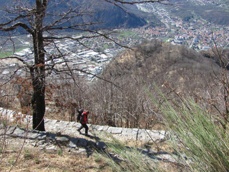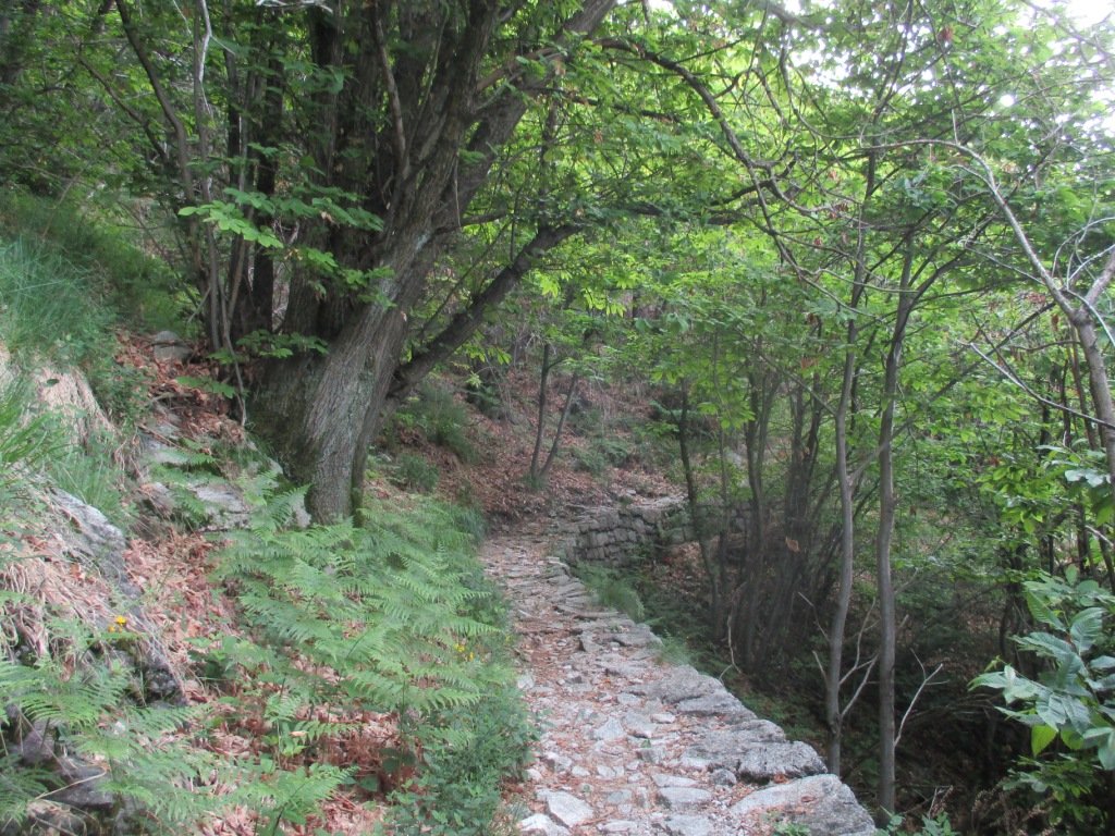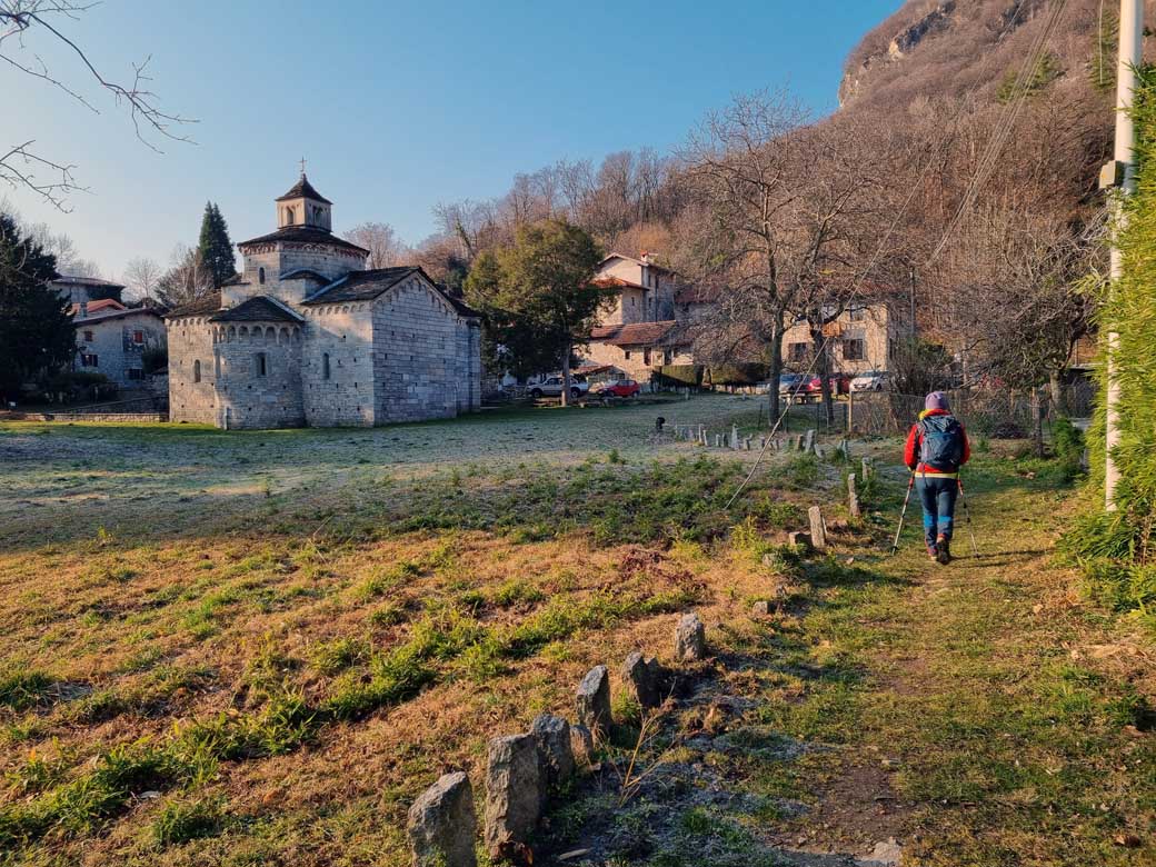 Dopo la sosta in cima per ammirare il panorama ed i vari trinceramenti si seguono le indicazioni per Montorfano. Il villaggio (chiesa romanica e battistero paleocristiano) si raggiunge con una ripida discesa nel bosco, sempre ben indicata.