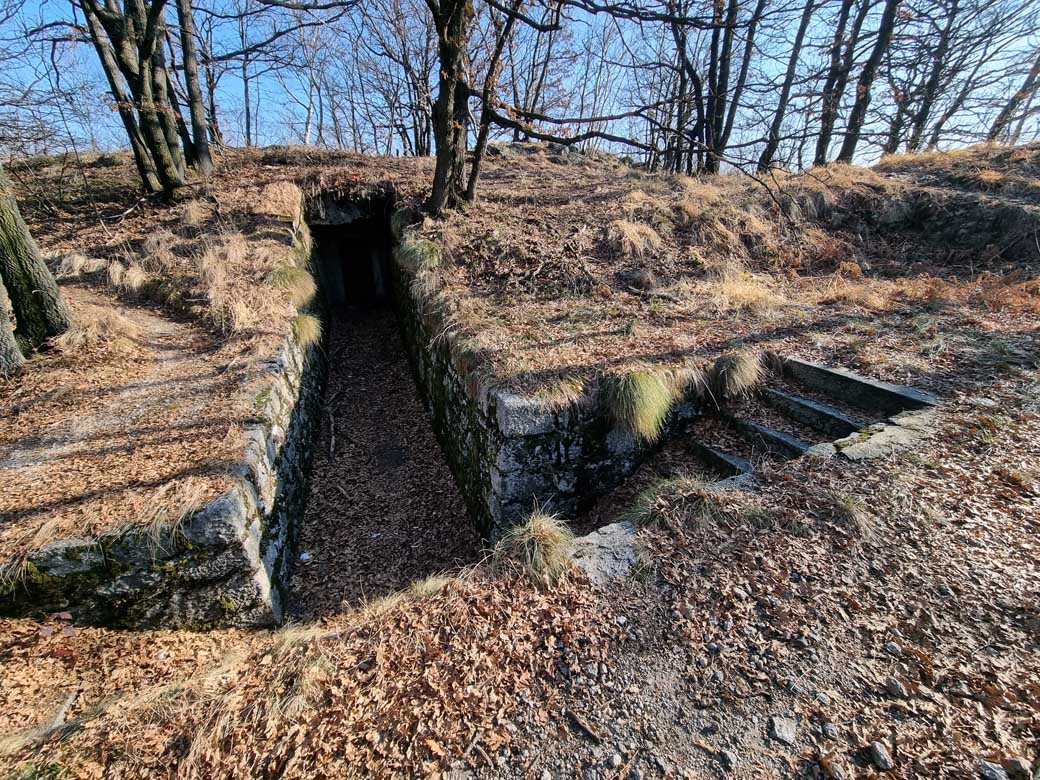 Lo si segue fino ad incrociare una sterrata, per poi proseguiri dritti seguendo l’indicazione “Montorfano vetta”. Si seguono i segnavia continuando a salire nel bosco, immettendosi in varie sterrate o sentieri, fino a sbucare sul tornante della camionabile della Linea Cadorna. Poco sotto c’è una caserma abbandonata, estremamente interessante, che vale la brevissima deviazione. Si ricomincia poi a salire lungo la camionabile fino ad un nuovo incrocio di sentieri (indicazioni).