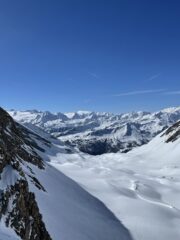 L’ultimo canalino più brutto da sciare per via della neve a pallottole di vecchie slavine. Ne abbiamo poi risalito un altro esposto a Sud per poter godere della bella neve trasformata.