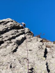 Dopo aver salito in una giornata fotonica Ettore, sull’onda dell’entusiasmo abbiamo fatto la bellissima Overfive. Spit e soste tutto in ordine.