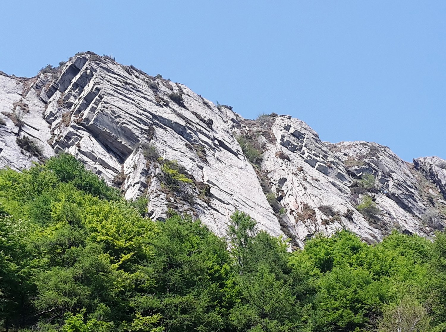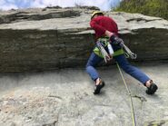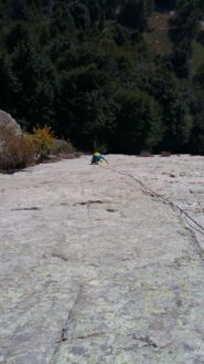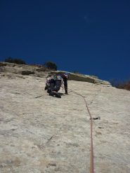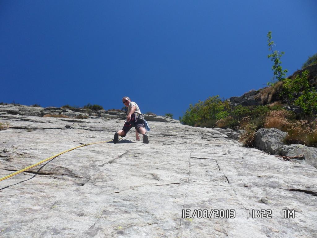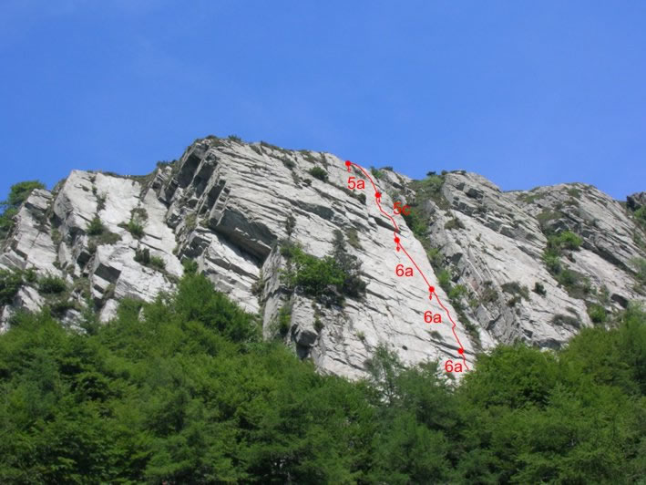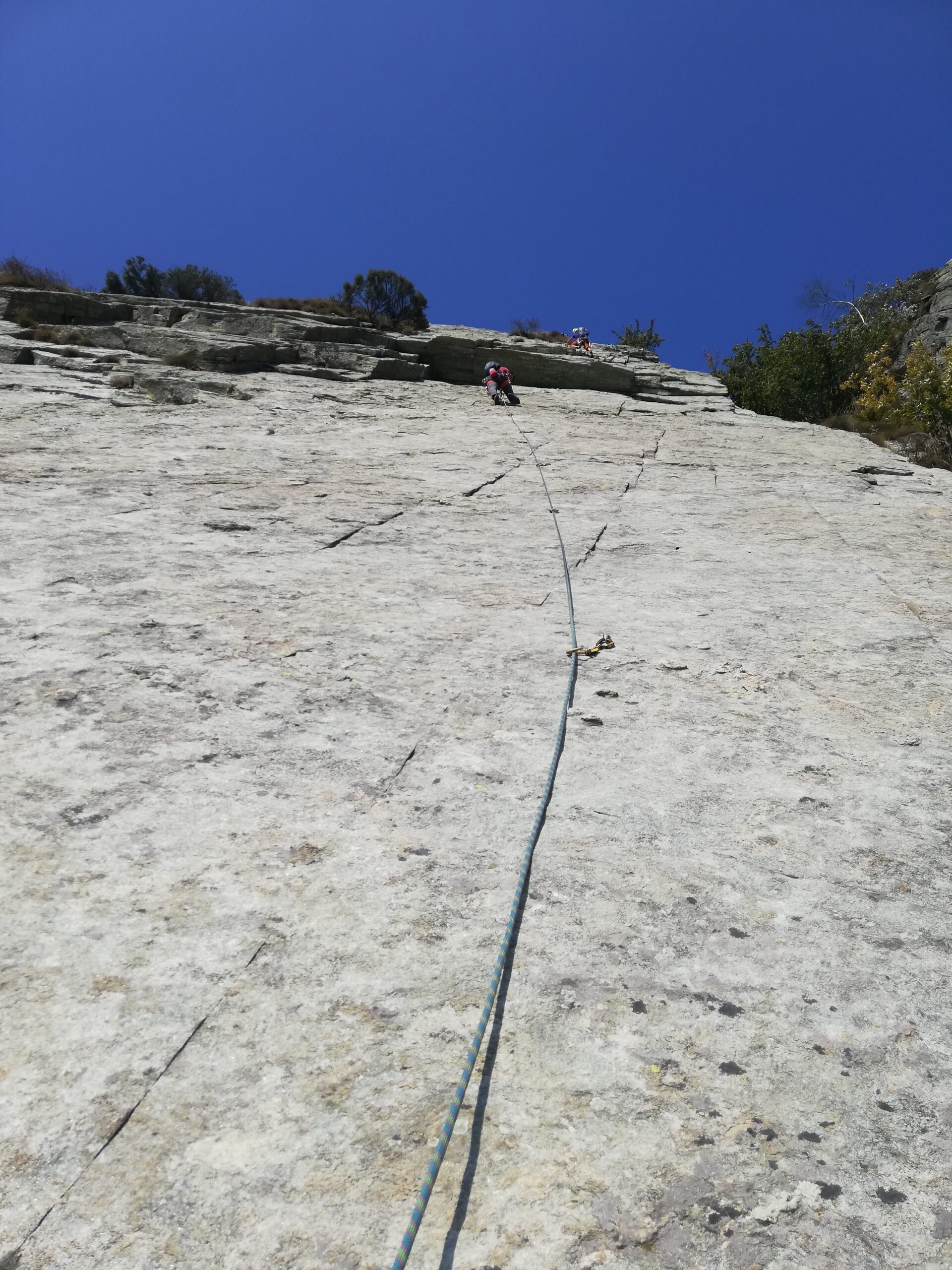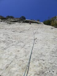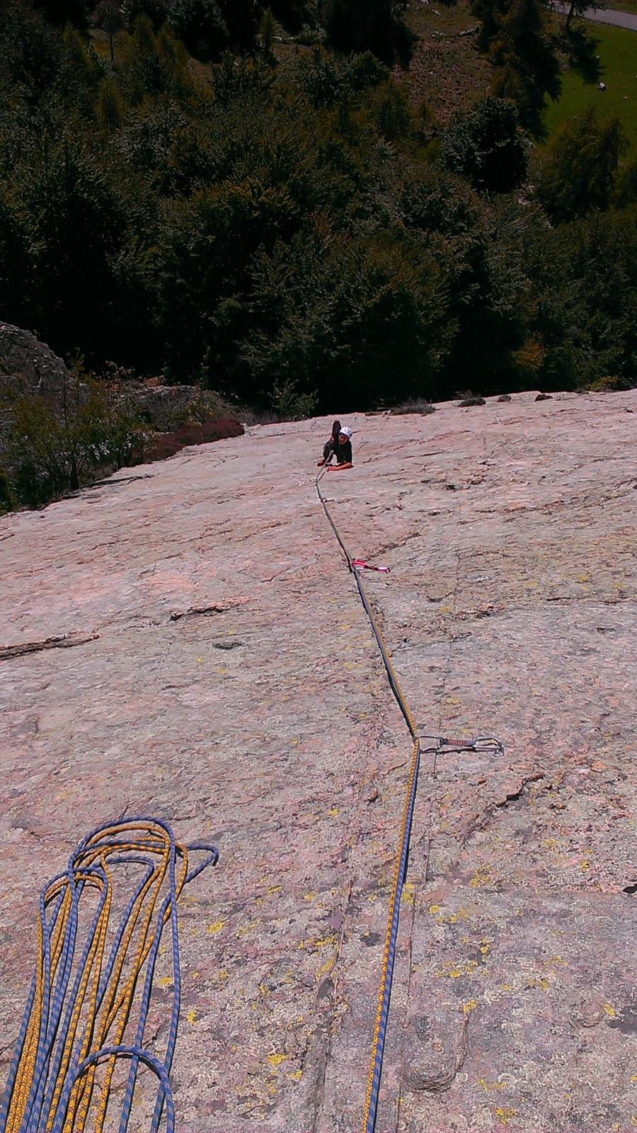 - L1 – 5c facile ma impegnativo all’inizio con muretto da superare (aggirabile) e poi ci si trova in placca esposta in cui buttarsi per poter rinviare
