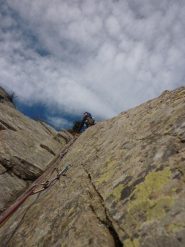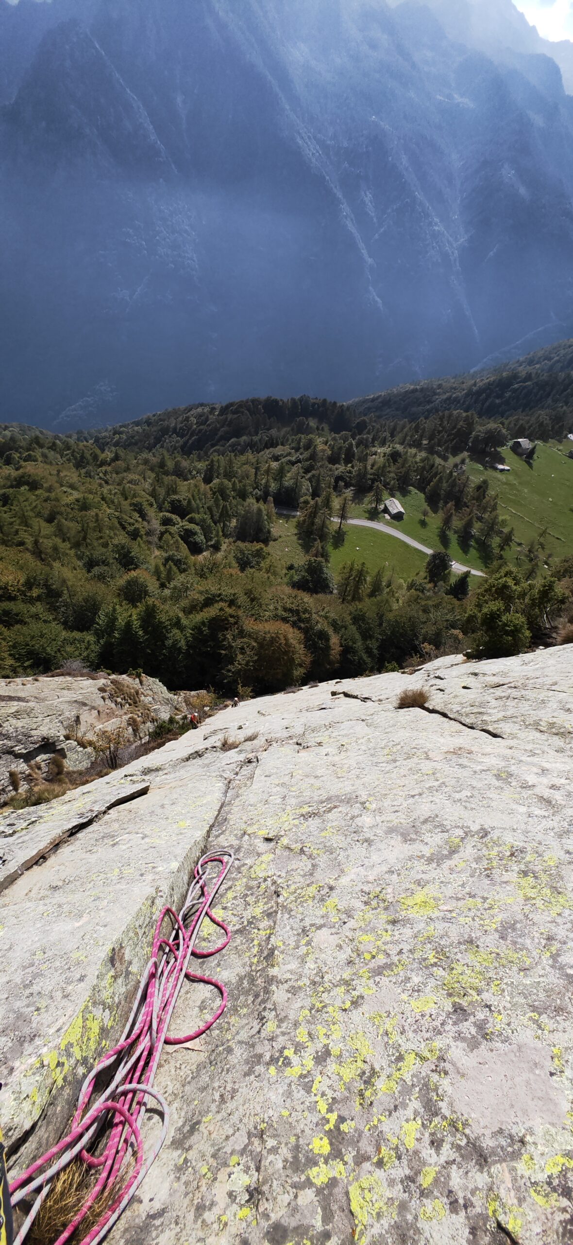 Belle vie di placca in cui la tecnica di piedi la fa da padrone...ma non manca qualche bel tettino da passare...a mio parere la chiodatura è un po sbagliata..in alcuni passi sarebbe meglio avere il chiodo vicino per evitare di "splattarsi" sulla placca per 5/6m...bello l'ambiente..secondo me la via più continua ed estetica della parete..