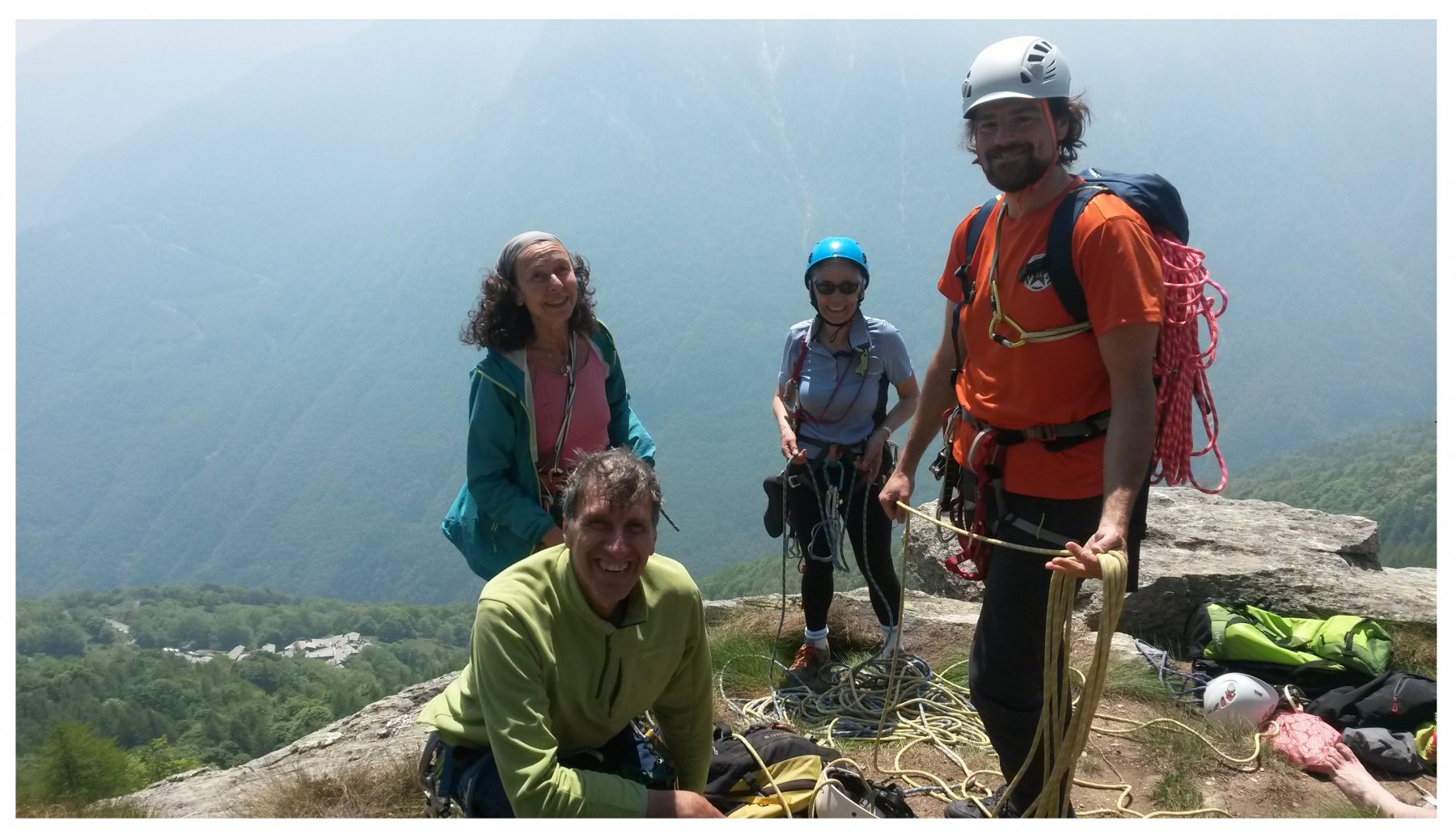 Bella via, ben spittata, tutta su placche (con due brevissimi saltini verticali a termine del III e del IV tiro); roccia buona e ottima aderenza. (Daniela-Mariella e Stefano-Massimo)
