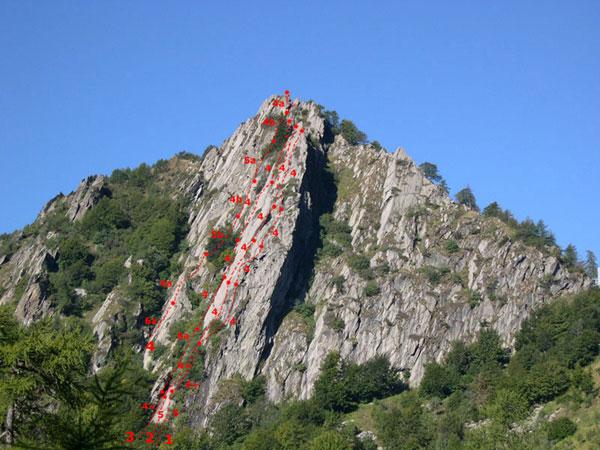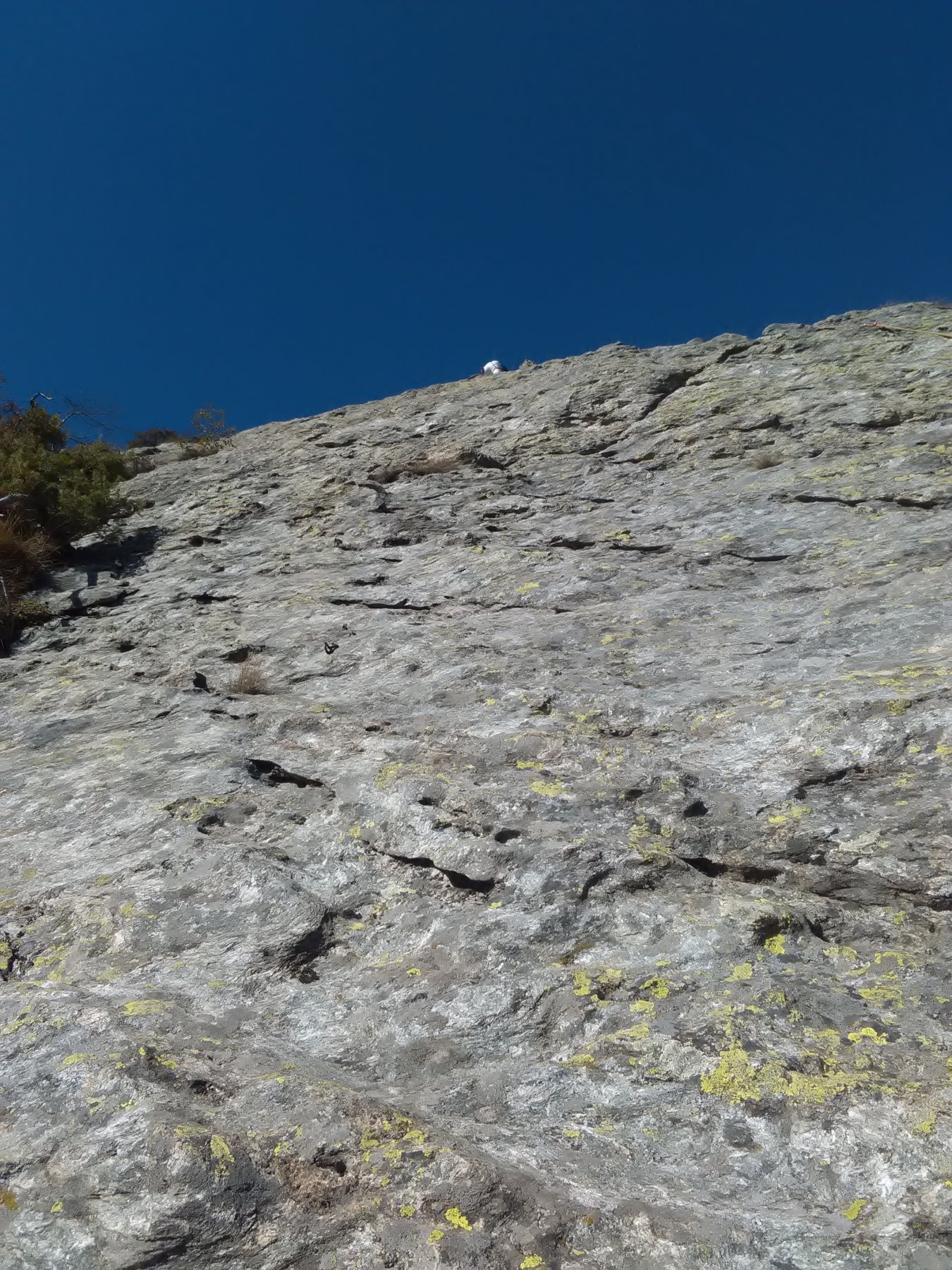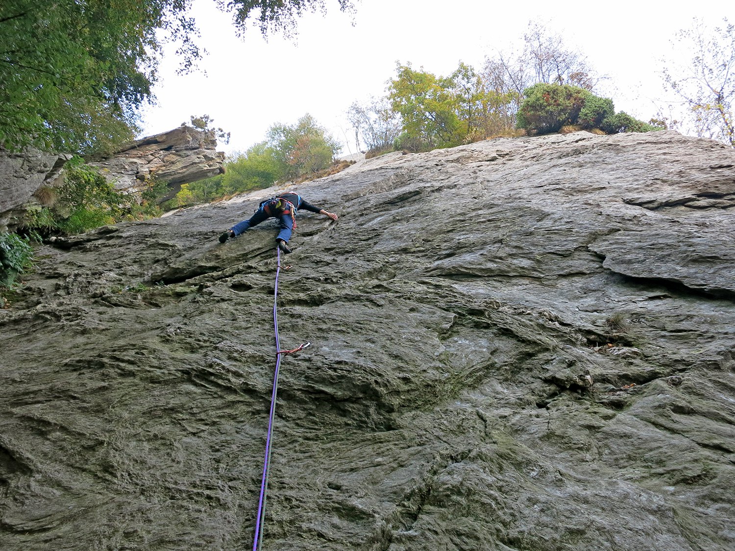 - L1: 5c: Bella placca, passo di aderenza di 5c ad un terzo del tiro (non azzerabile), poi più facile ed appigliato (4c)