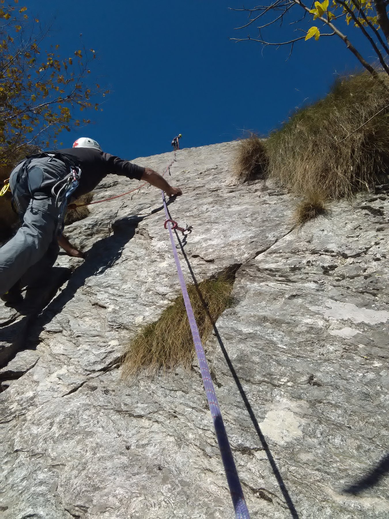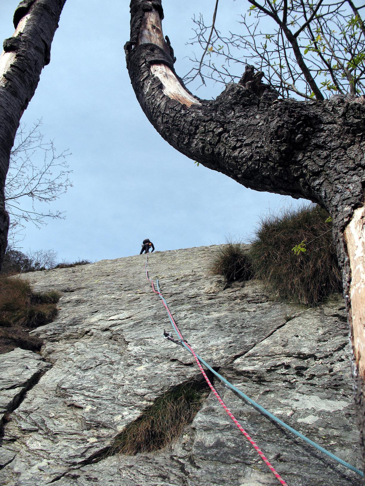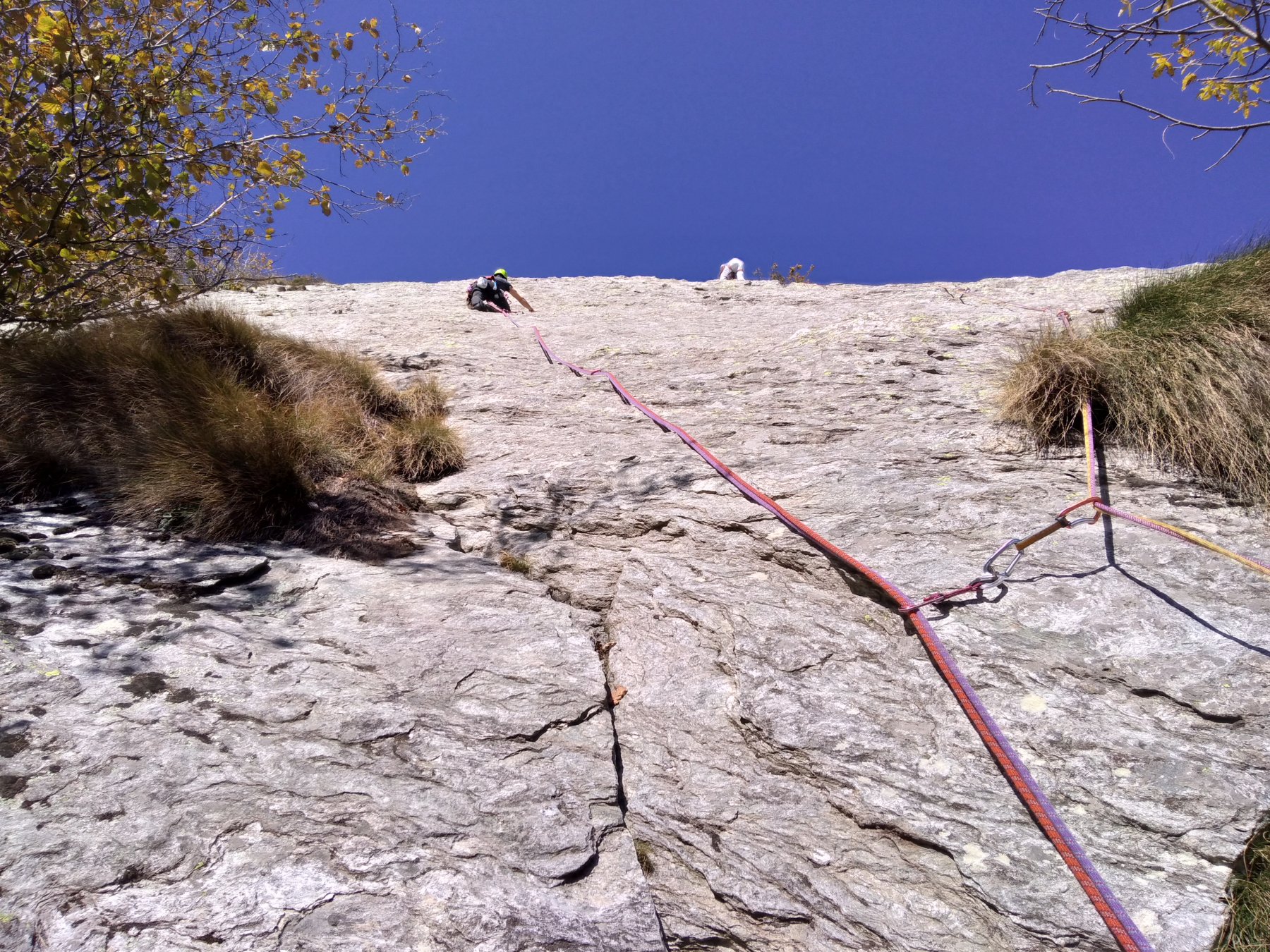- L1: 5c: Bella placca, passo di aderenza di 5c ad un terzo del tiro (non azzerabile), poi più facile ed appigliato (4c)