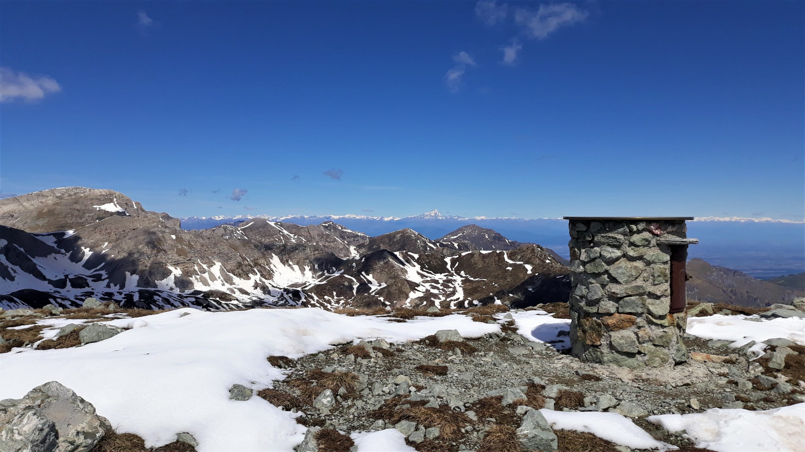 Seconda volta su questa bella cima della Val Tanaro, ma questa volta salendo dalla frazione Chionea. Il sentiero risale dapprima verso la Colla di Chionea (bello scorcio su Valdarmella) e poi segue più o meno fedelmente la costa Valcaira. Si riesce a raggiungere la vetta con semplici scarponi, senza quasi pestare neve (rimane un ampio nevaio sul colletto a monte del ripetitore, per il resto solo qualche chiazza). Dalla cima panorama eccezionale, a giro d’orizzonte. Dalla Corsica al Monte Rosa e oltre!
