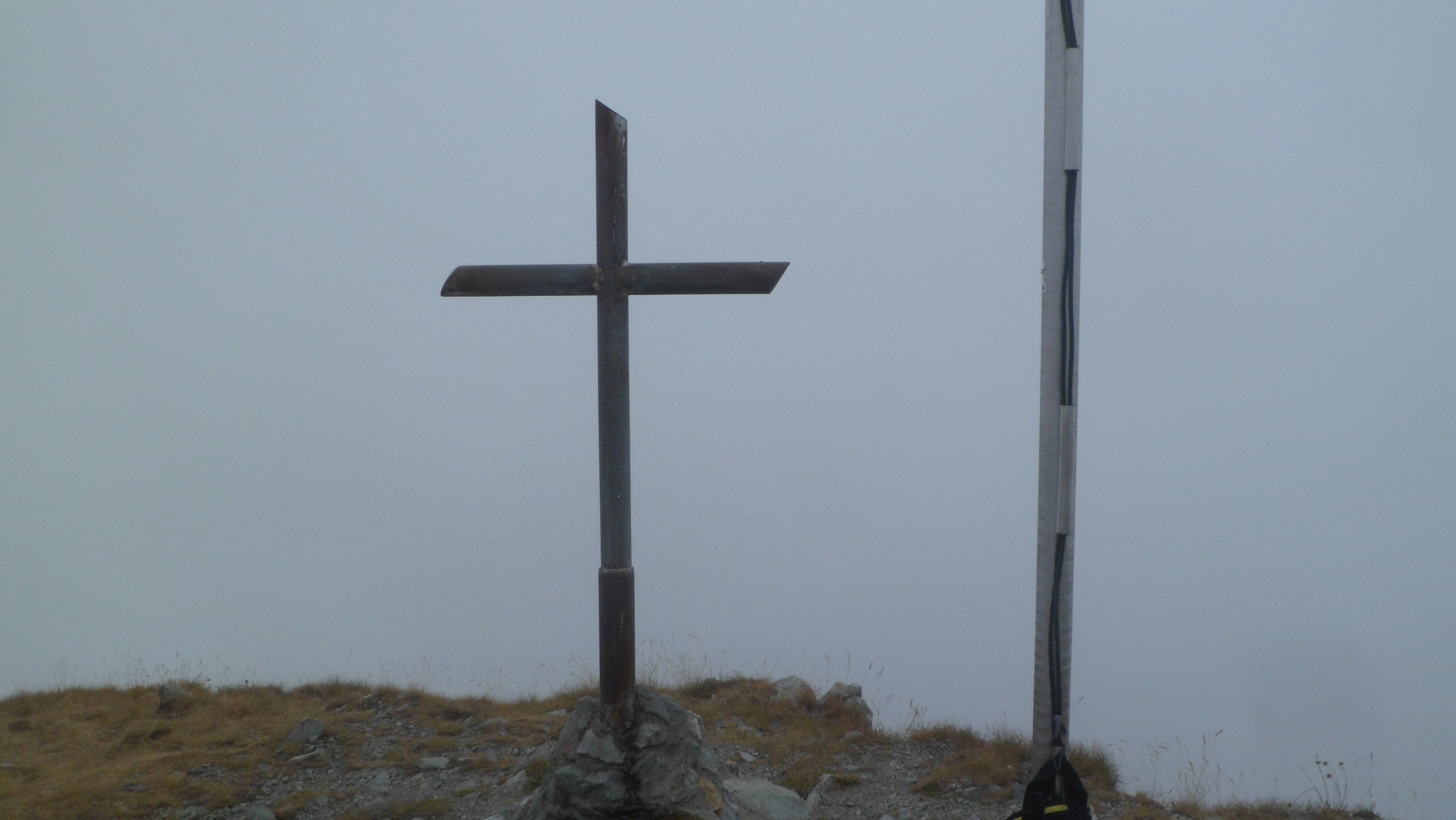 Incontrata salendo trio di escursionisti (padre, madre e bambina) con cui mi sono fermato a parlare e che risaluto. In cima una coppia di escursionisti.