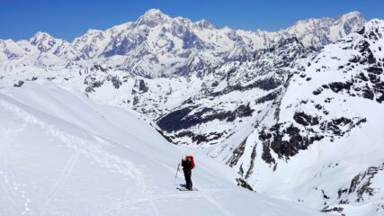 Si cammina comodamente per 20/25 minuti poi sci ai piedi sino al colle a quota 3200 circa .