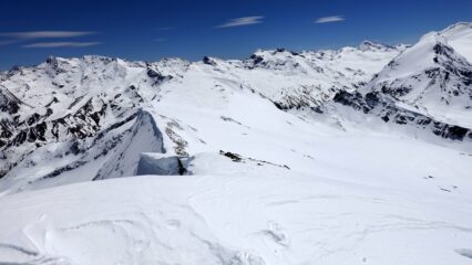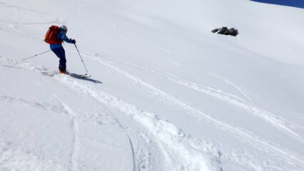 La discesa nonostante l ‘ ora tarda è stata veramente godibile , solo gli ultimi 100 mt dsl sono diventati sfondosi .