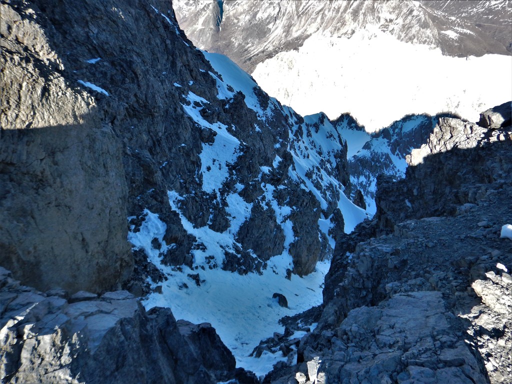 Con Gianluca, stamane -2°C al colle, assai più caldo in quota. Da considerare che il canale dopo la ns. discesa e quelle precedenti è abbastanza ravanato…