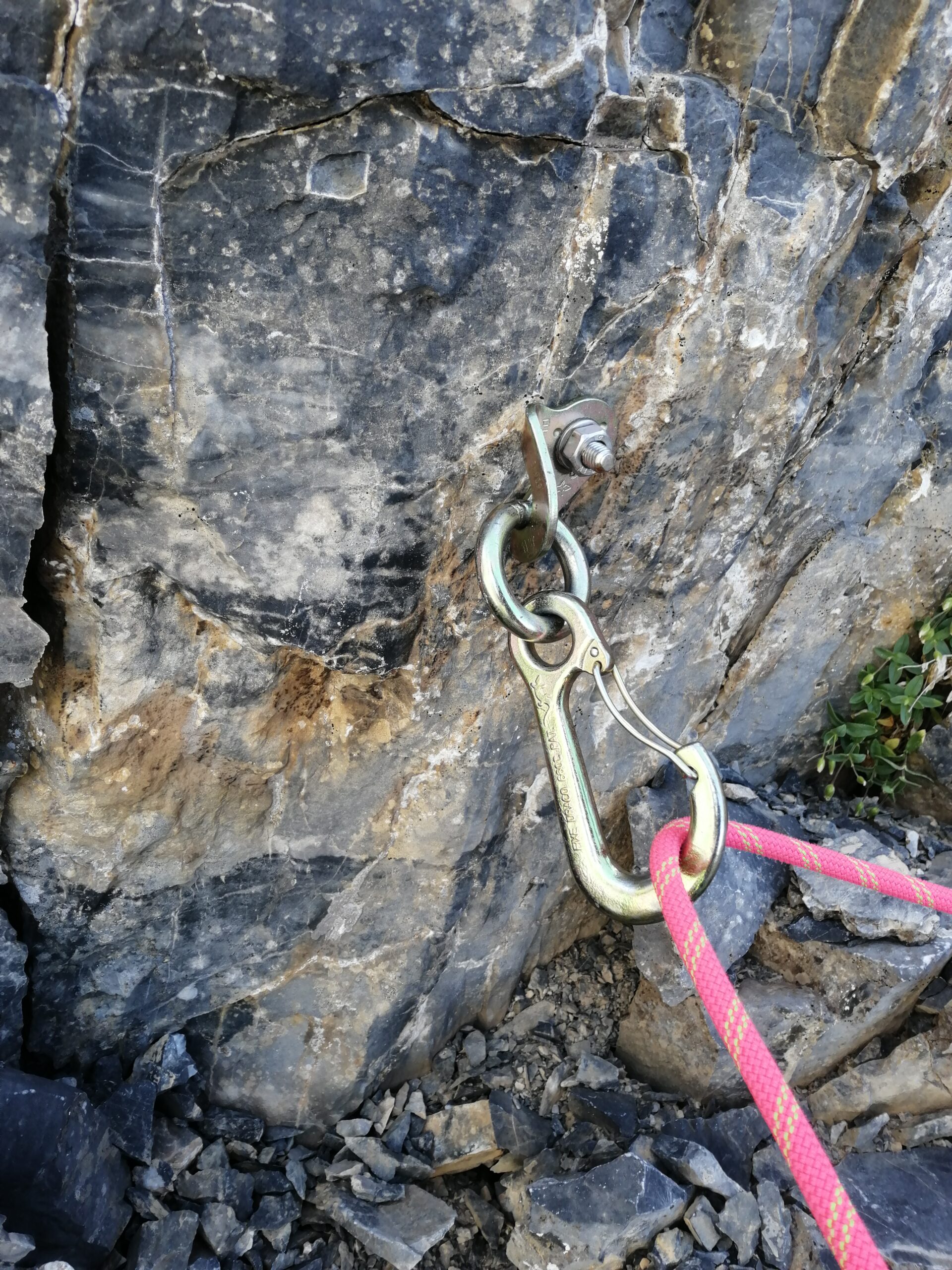 Ferrata OK, caratteristica la scala finale. In cresta fino alla prima calata super protetto con spit con moschettone, il tiro di IV è ben protetto (bastano 6-7 rinvii) e forse l’unico punto della montagna con roccia buona. Dopo il tiro di III non abbiamo più visto spit ma è tutto abbastanza facile, noi abbiamo protetto usando qualche fettuccia o cordino sugli spuntoni. Discesa super ravanosa, intuire il percorso dall’alto non è così semplice, abbiamo trovato qualche sosta per doppia ma non sapendo da quanti metri erano abbiamo sempre disarrampicato, proteggendoci dove serviva con cordini e fettucce.